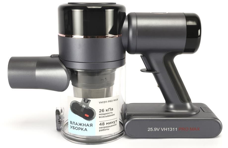 Вертикальный аккумуляторный пылесос Redmond VH1311 Pro Max понравился нам весьма богатой комплектацией, неплохим соотношением мощности и продолжительности автономной работы, а также низким уровнем шума.