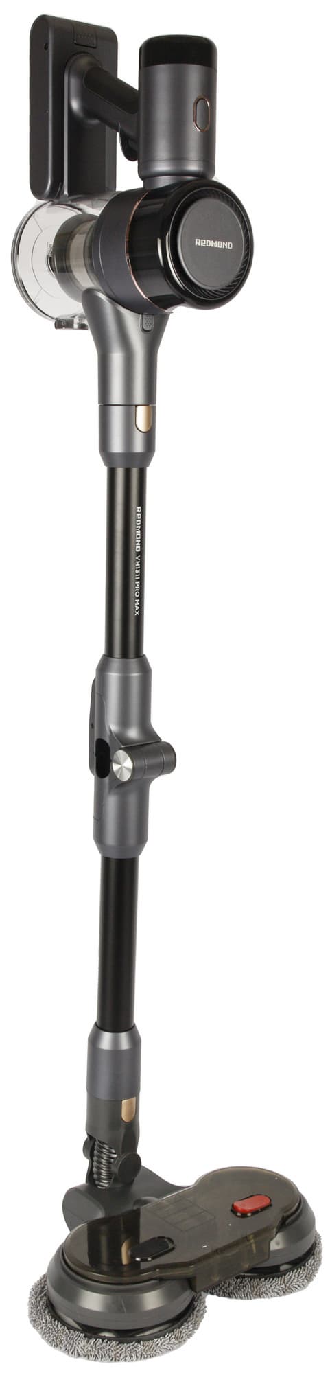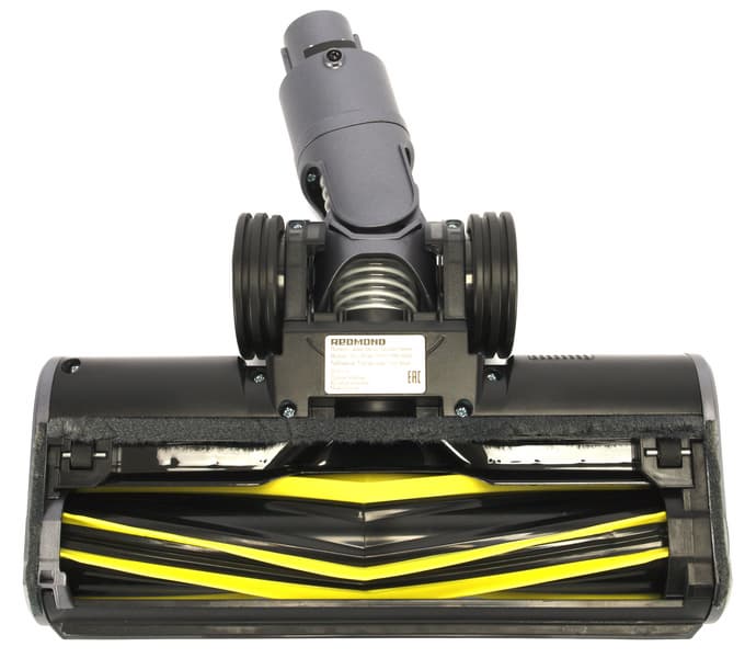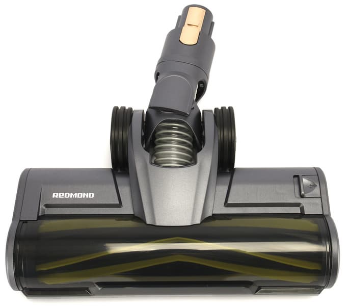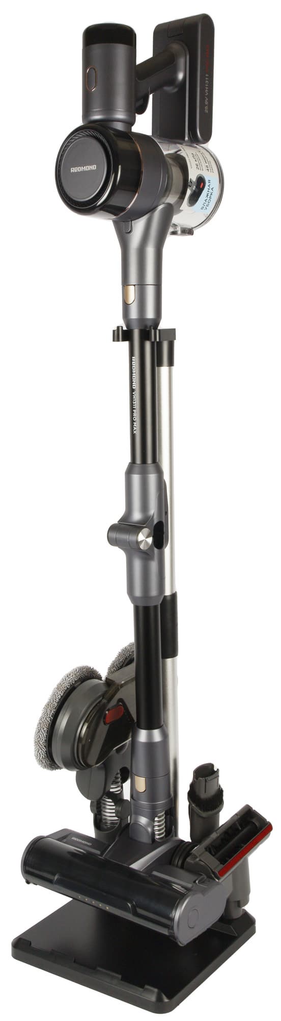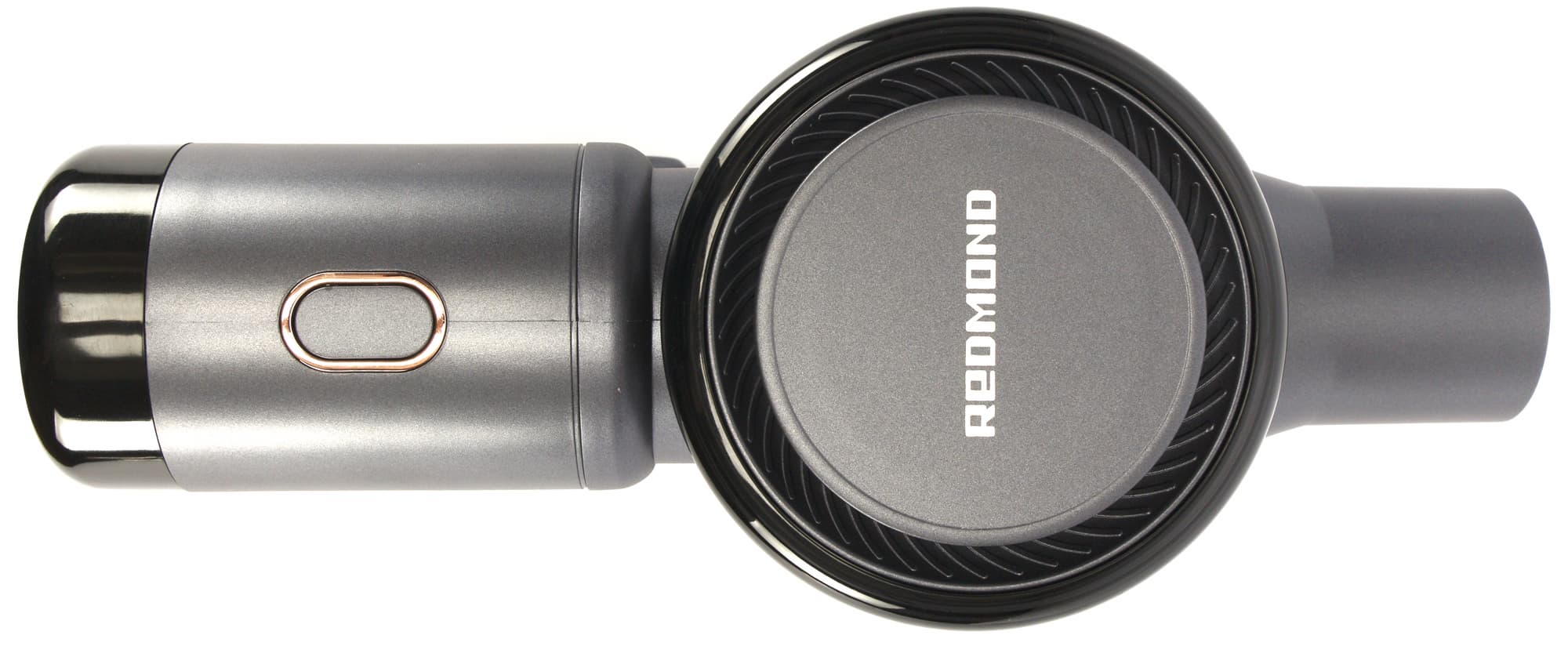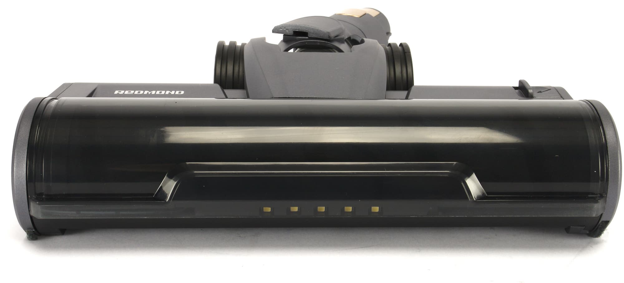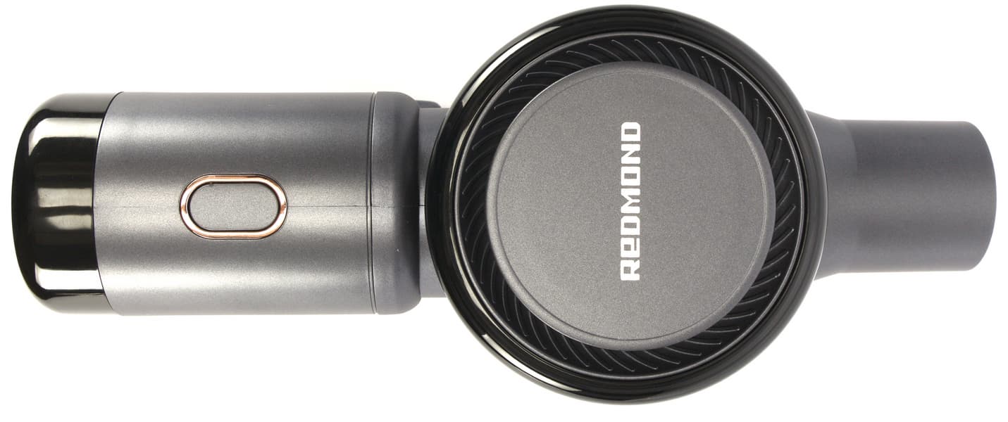 Моторный блок этой модели очень похож на ранее рассмотренный нами вертикальный пылесос Redmond VH1311: он оформлен в той же самой серо-черной гамме, у него та же конструкция и компоновка.