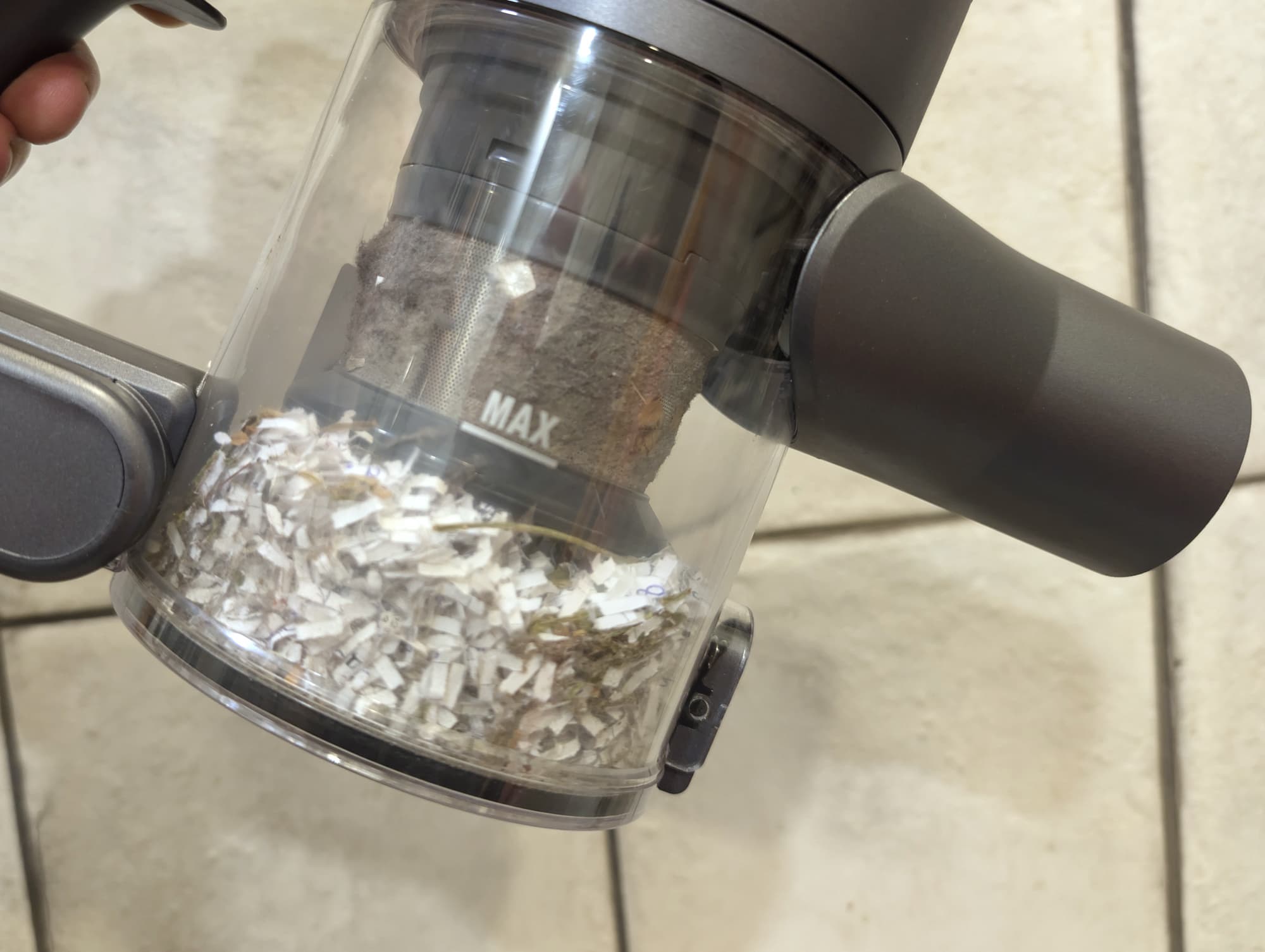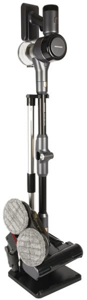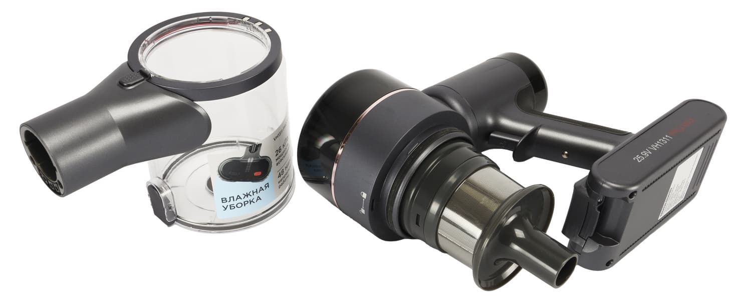 Подобную конструкцию мы часто встречаем у роботов-пылесосов с функцией влажной уборки, а в вертикальных — пожалуй, впервые.