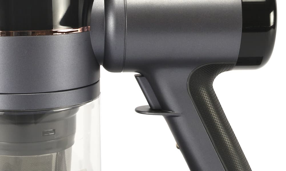 Для переключения режимов предназначена сенсорная кнопка на верхней стороне моторного блока. Расположение не позволяет нажимать ее той же рукой, которая удерживает пылесос. Чтобы повысить или понизить мощность, потребуется вторая.