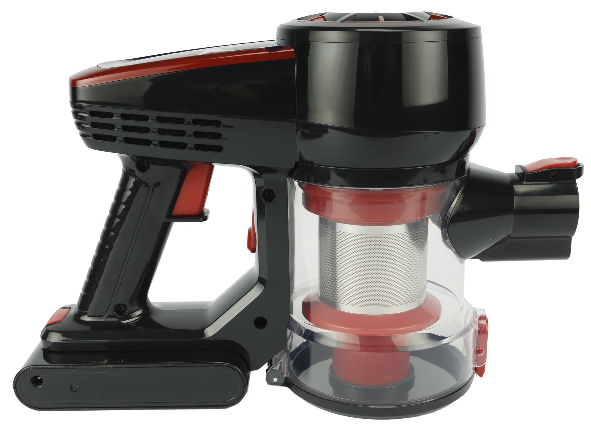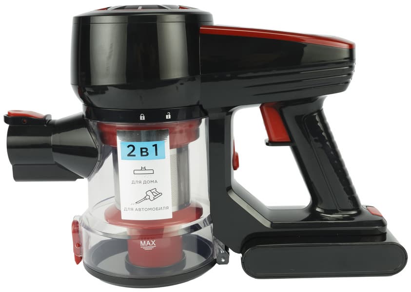 Включается и выключается пылесос «спусковым крючком» на пистолетной рукоятке. Это одинаково удобно делать и правой, и левой рукой. Кнопка на корпусе напротив ручки служит для фиксации контейнера с мусором.