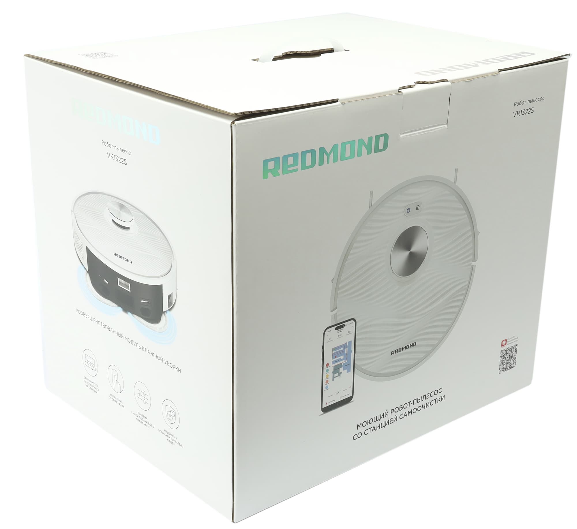 Redmond VR1322S — еще один взгляд на стандартное решение «робот+база сбора мусора» плюс возможность влажной уборки при самостоятельном доливе воды и уходе за щетками. Устройство выглядит стильно и элегантно, база — миниатюрная, без потери в функциональности. Давайте рассмотрим все поближе.
