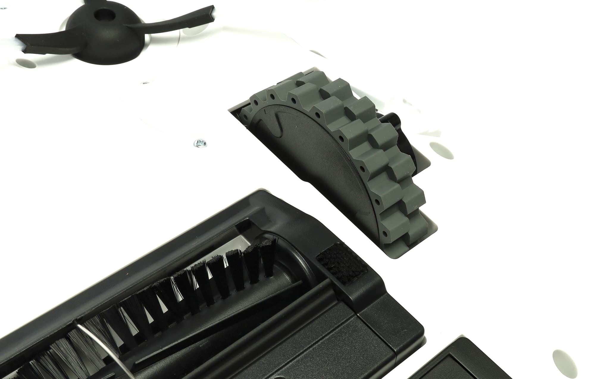 Для крепления щетки внутри корпуса робота используется дополнительная пластиковая защелка. Выглядит, прямо скажем, не особо надежно.