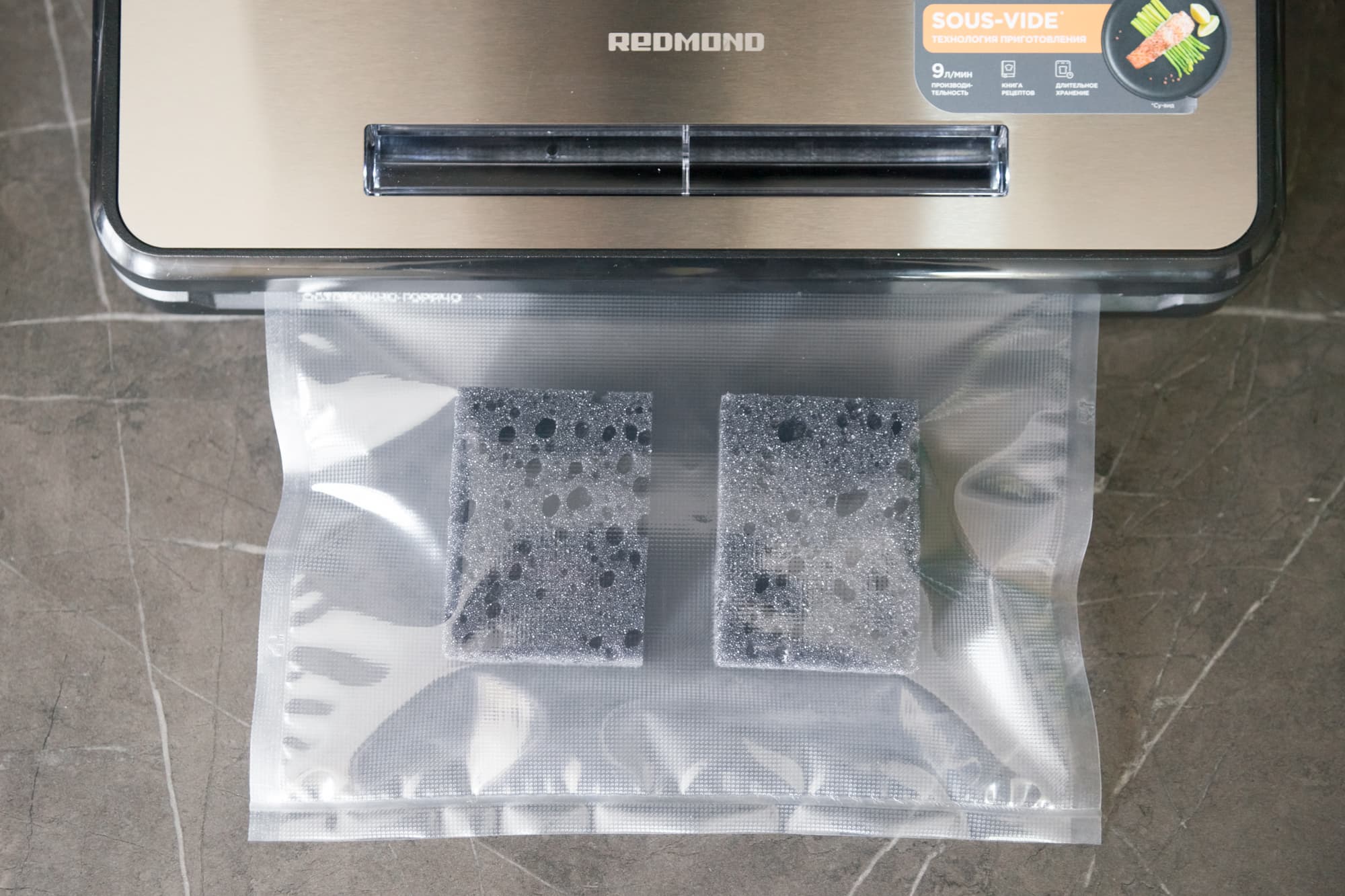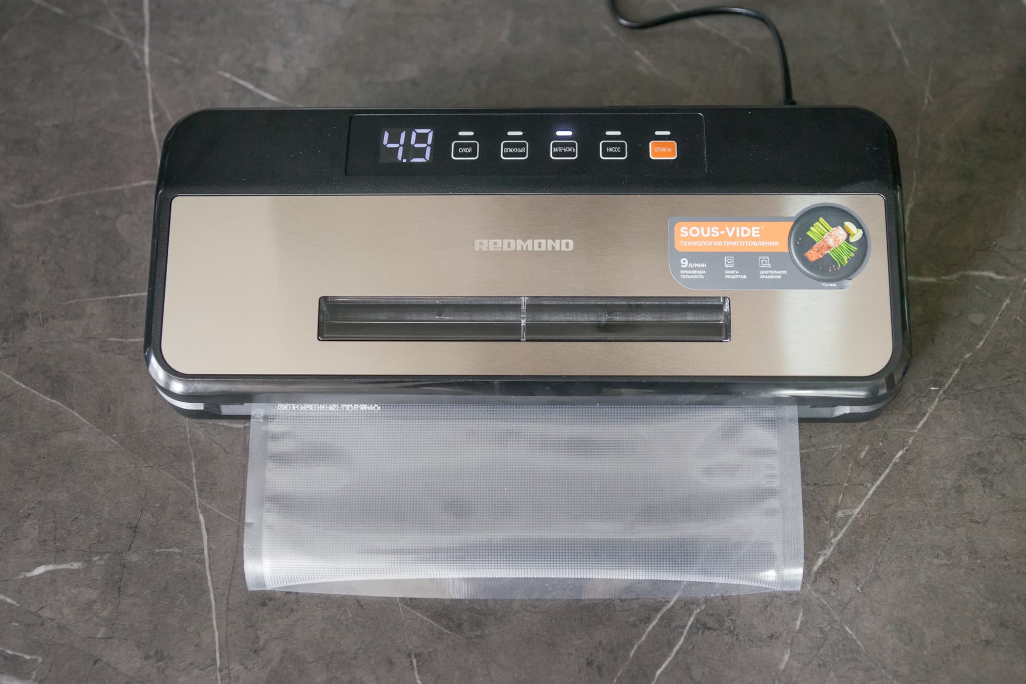 Быстро, просто и удобно. Эксплуатация Redmond VS1500 не доставила вообще никаких хлопот. Качество вакуумирования и шва на пакетах — без нареканий. Запаянные пакеты с разным содержимым мы хранили от 3 до 15 дней и ни разу не зафиксировали разгерметизации.
