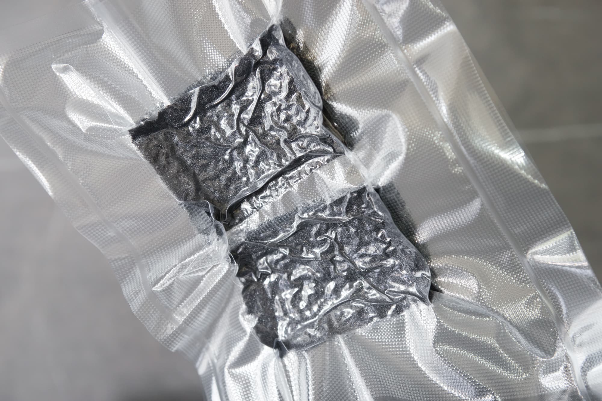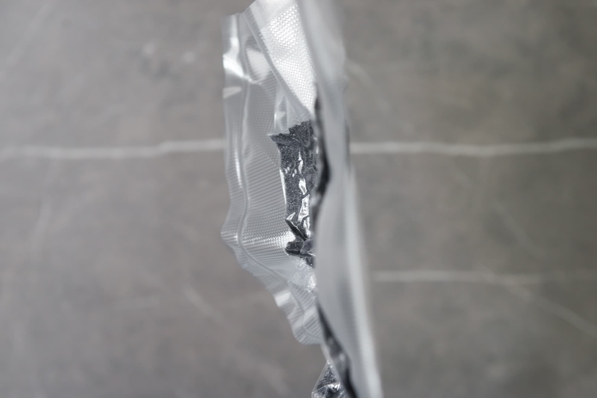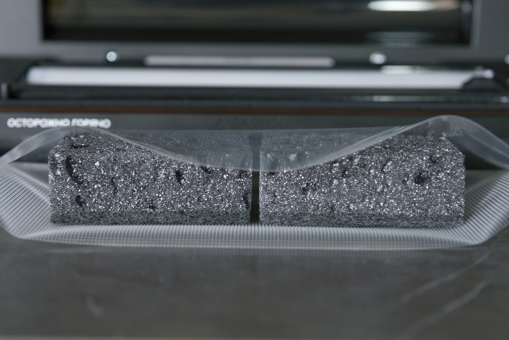 Для проверки качества откачки воздуха мы постучали пакетом по столу и убедились, что ни одна крупинка с места не сдвинулась.