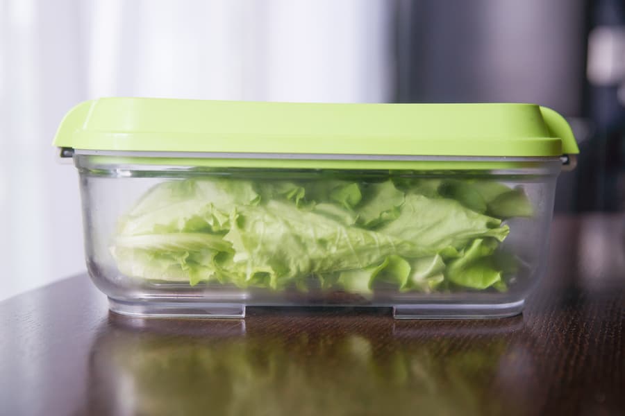 После убрали контейнер в холодильник и вернулись к нему только спустя четверо суток. Салат выглядел всё таким же свежим.