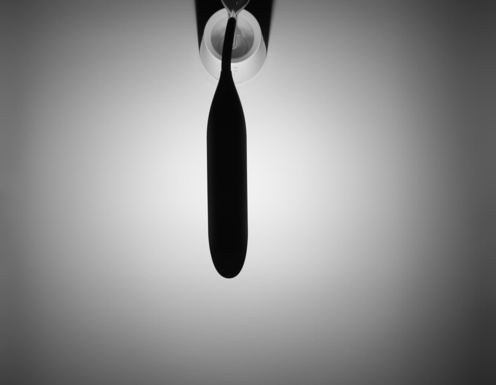 Для оценки распределения освещенности по плоскости, которую освещают лампы, мы сделали фотографии того, как лампы освещают белый фон. Ширина фона (горизонтальный размер фотографий ниже) — примерно 1 м. Осветительный блок ламп был поднят в максимально высокое положение с сохранением горизонтальности. Отобраны фотографии с максимальной выдержкой, но на которых еще нет пересвета. Фотографии переведены в шкалу серого. В пару к ним приведены изображения, полученные после перевода фотографий в белый и черный цвета с порогом 127, — они наглядно позволяют оценить геометрию области освещения.