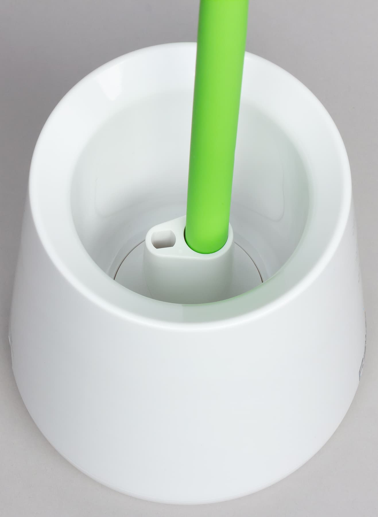 Основание-горшок нетяжелое, изготовлено оно из белого пластика в основном с зеркально-гладкой поверхностью. Наибольший диаметр основания 128 мм, а высота — 138 мм. Снизу на основание наклеены полоски из пористого упругого пластика, чтобы лампа не скользила по столу и не царапала его поверхность.