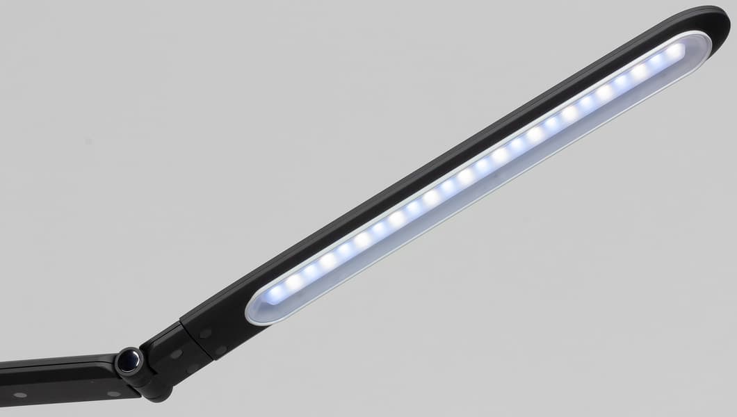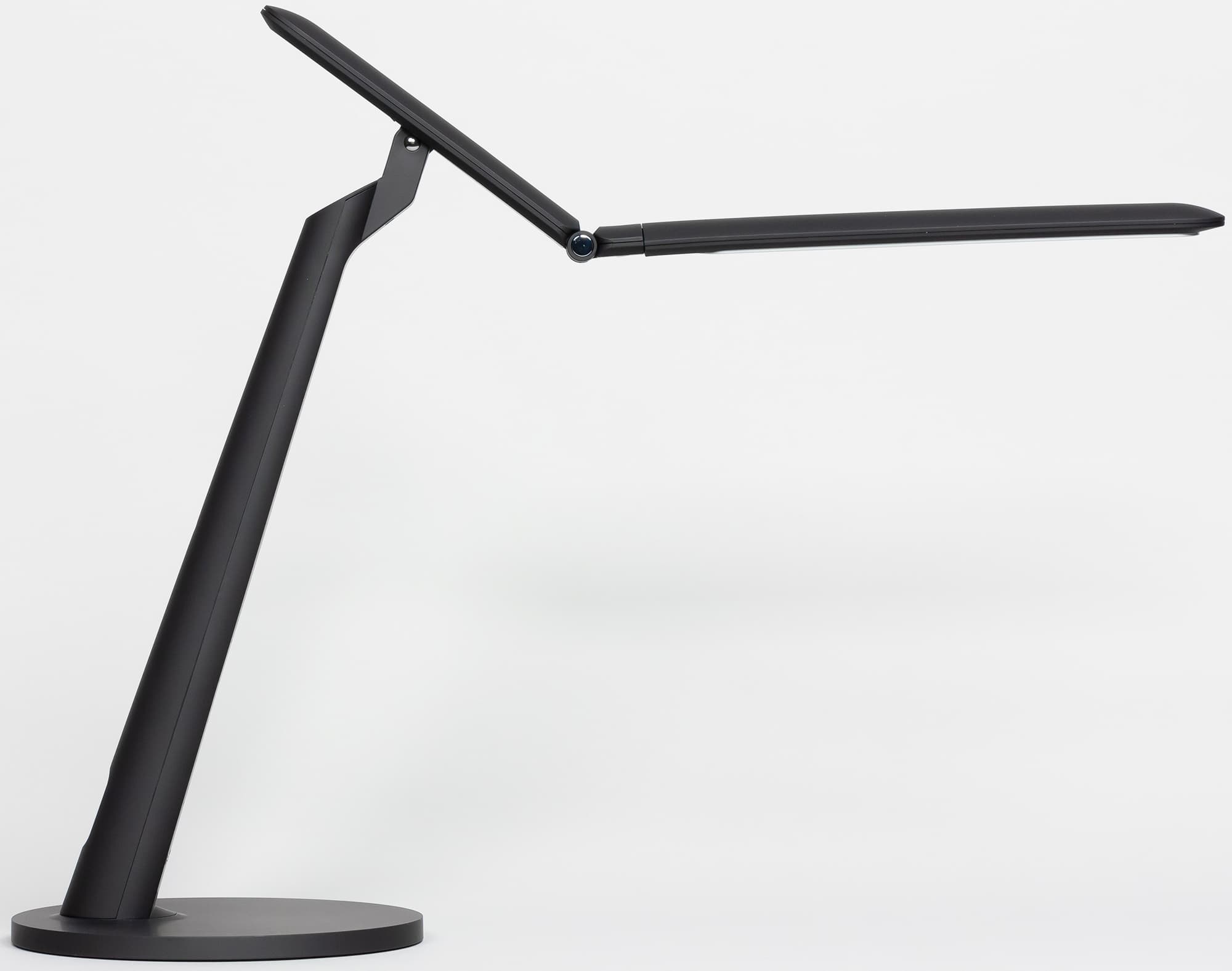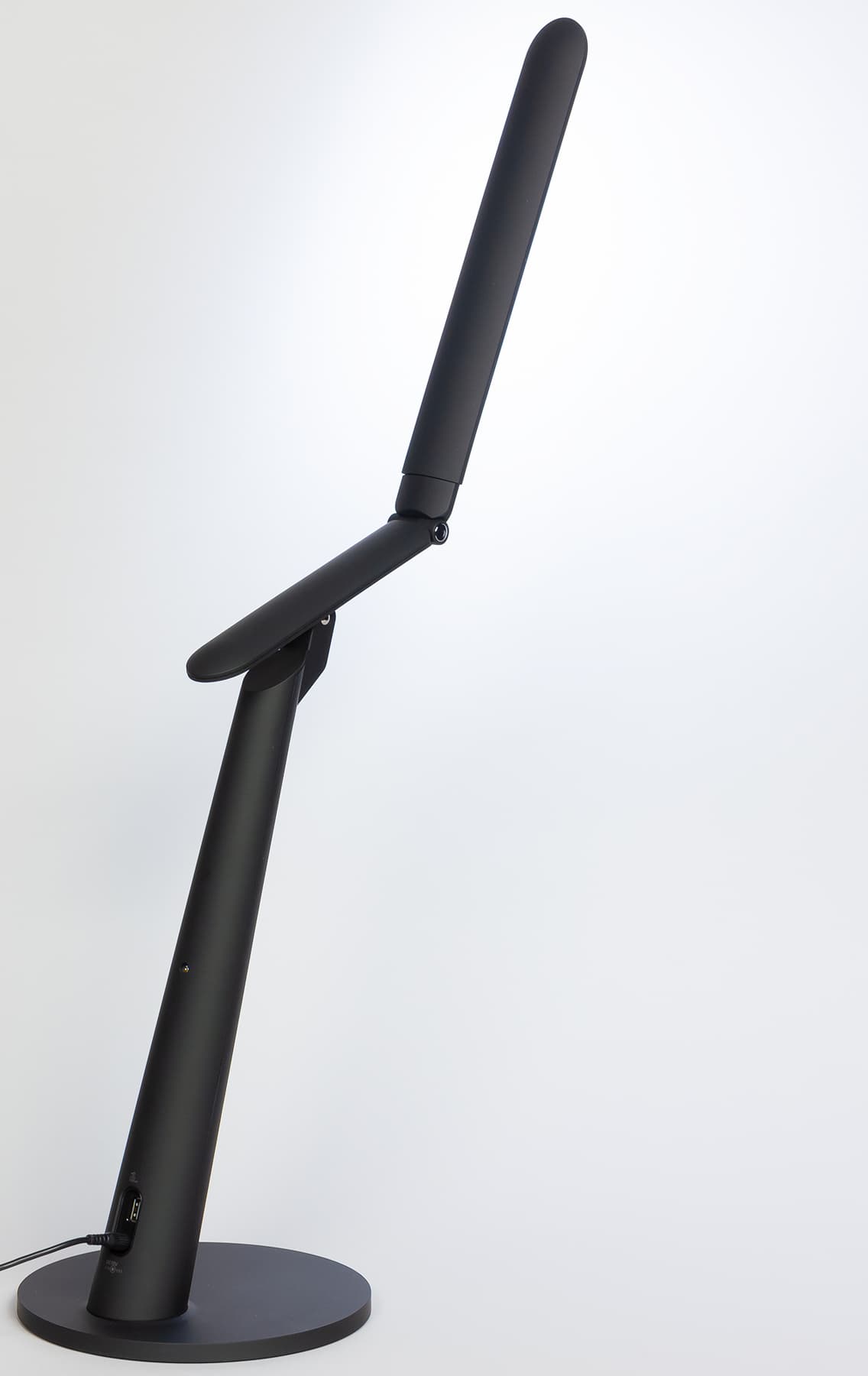 Первый шарнир позволяет отклонять первое колено вверх на 19 градусов и вниз на 36 градусов относительно горизонтального положения, диапазон второго шарнира — 88 градусов вверх и 98 градусов вниз, а третий шарнир позволяет поворачивать последнее колено со светорассеивателем на ±30 градусов вокруг продольной оси. Столько степеней свободы позволяет в достаточно широких пределах настраивать направление потока света и в небольших пределах высоту источника света относительно плоскости стола (при горизонтальном положении светорассеивателя — это от 334 до 420 мм).