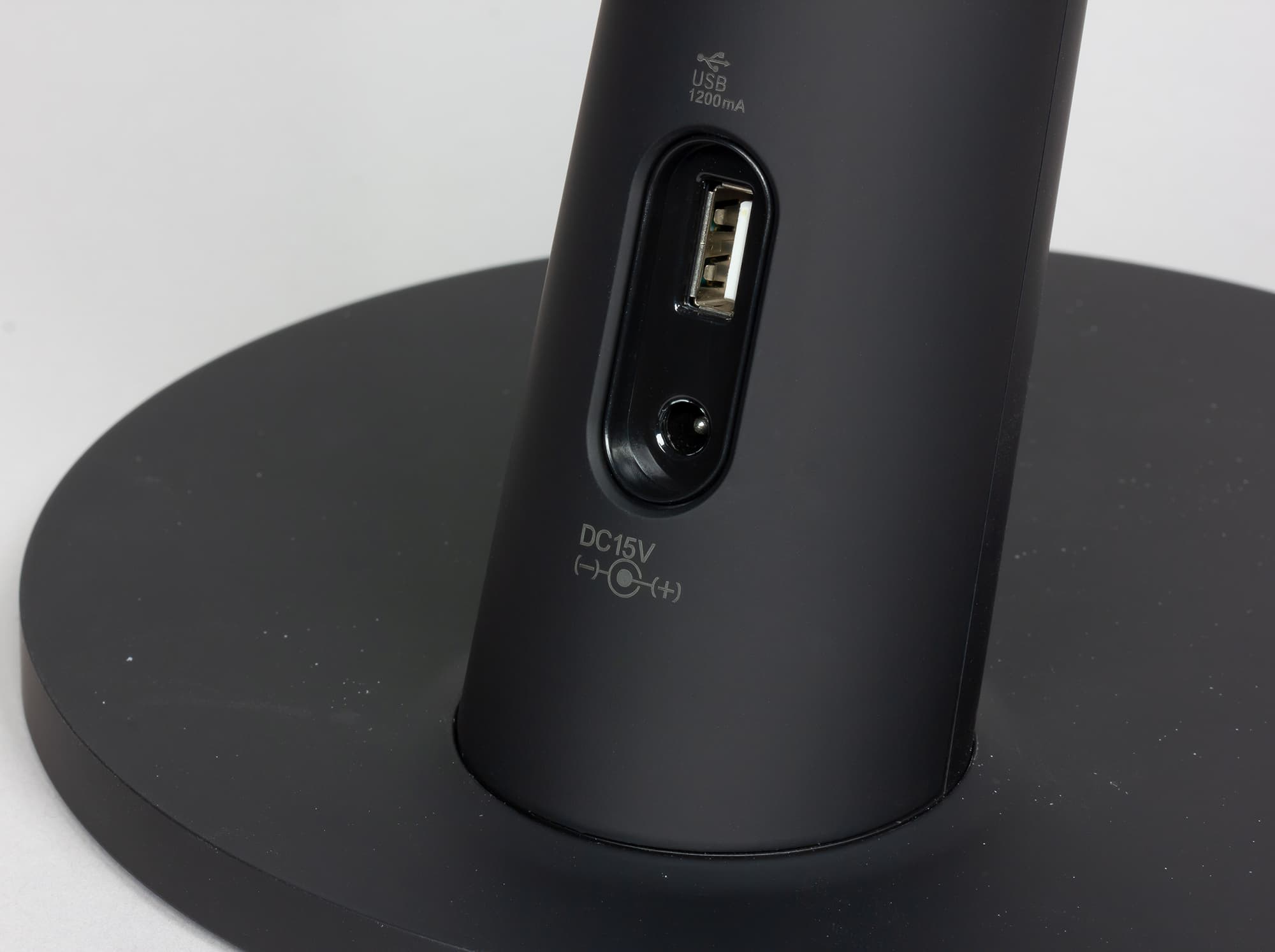Сзади на стойке есть разъем питания и USB-разъем, который можно использовать для питания внешних устройств, например электронных часов или для зарядки телефонов.