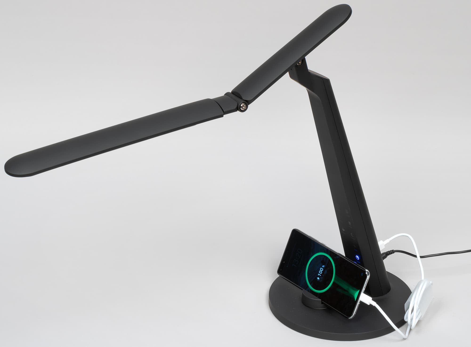 Во втором случае телефон можно расположить на небольшой подставке, которая благодаря магниту удерживается сверху на основании лампы.