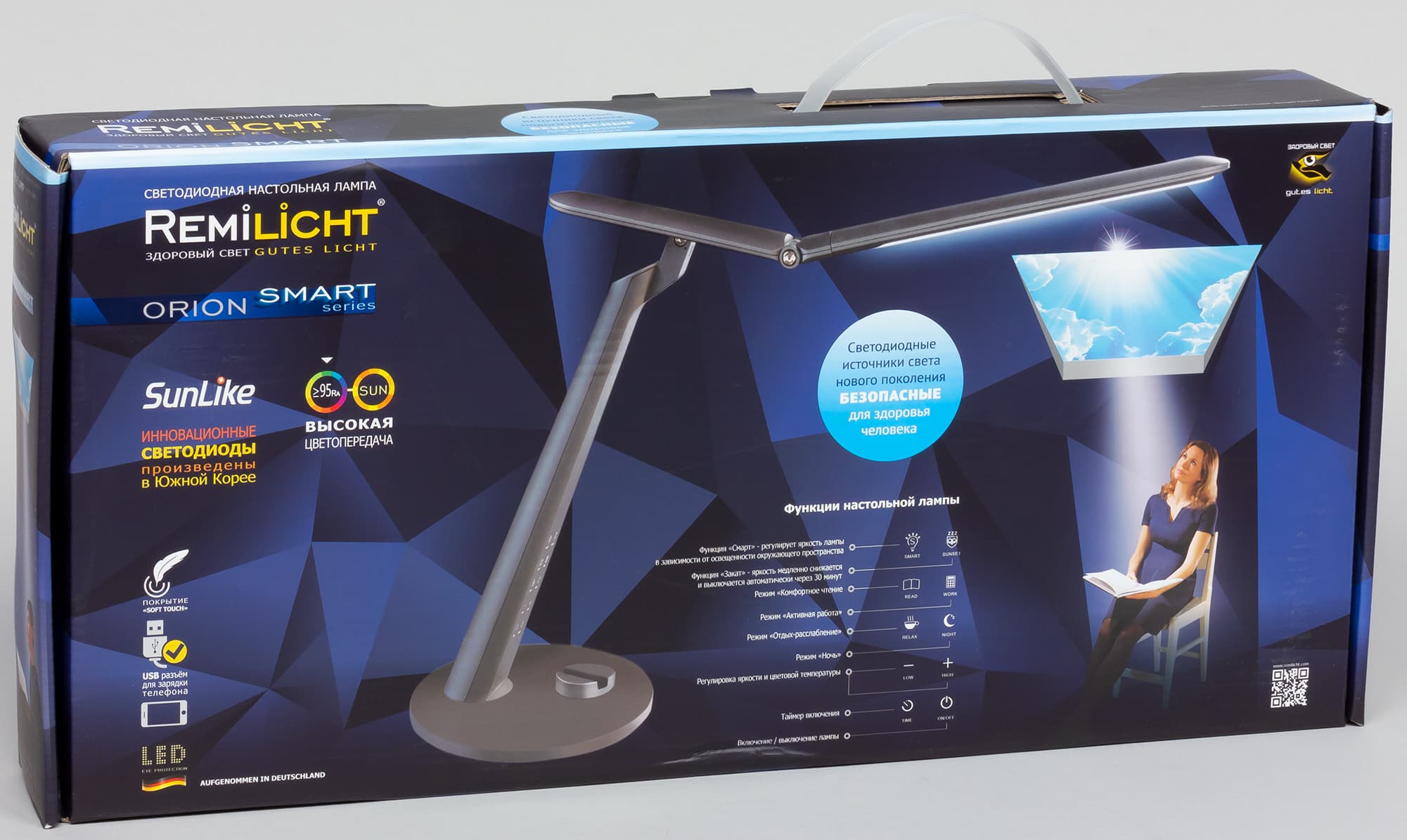 Настольные лампы Remilicht LA-H688 и LA-F638 имеют спектр с мало выраженным пиком синего, что в какой-то степени позволяет считать эти лампы более безопасными, чем лампы с обычными светодиодами. Впрочем, даже безотносительно данного факта лампы отличаются интересным дизайном и рядом дополнительных функций, таких как регулировка яркости, выбор цветового профиля или регулировка цветовой температуры, таймер на отключение, режим с автоматической регулировкой яркости и режимы Закат в случае LA-H688 и ночник в случае LA-F638. Дополнительно лампа LA-H688 может работать как зарядное устройство для смартфона, а в LA-F638 можно хранить всякую канцелярскую мелочь. К недостаткам можно отнести ряд мелких эргономических просчетов, связанных с работой сенсорных кнопок. Впрочем, это не портит общего положительного впечатления от строгой офисной лампы и лампы-растения.