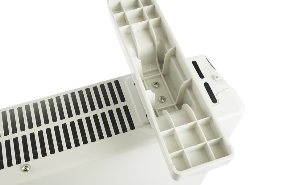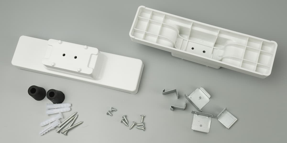 В комплекте мы найдем саморезы и пластиковые дюбеля, так что бежать за крепежом в магазин для того, чтобы повесить обогреватель на стену, не придется. Понадобится, разве что, крестовая отвертка (чтобы установить ножки) и перфоратор или дрель (для сверления стены).