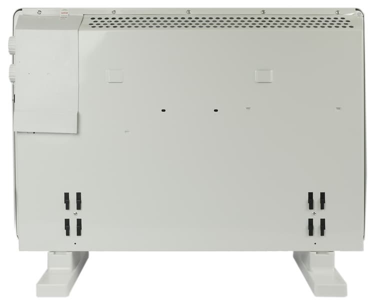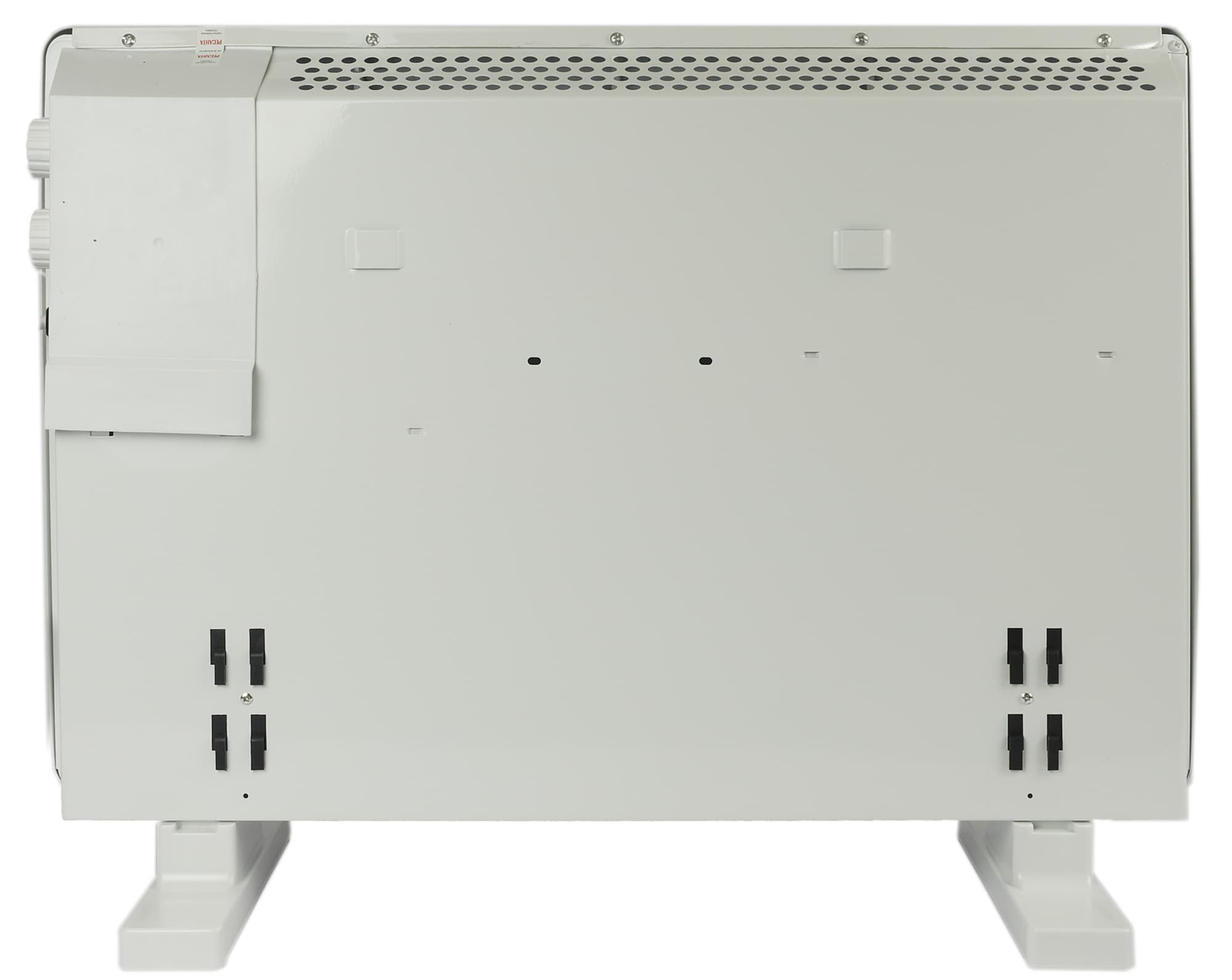 Настенное крепление обеспечивается с помощью специальных «ушек»-кронштейнов. Конвектор, таким образом, можно легко повестить на стену или снять в случае если возникнет такая необходимость (например, если пришла пора протереть его от пыли).