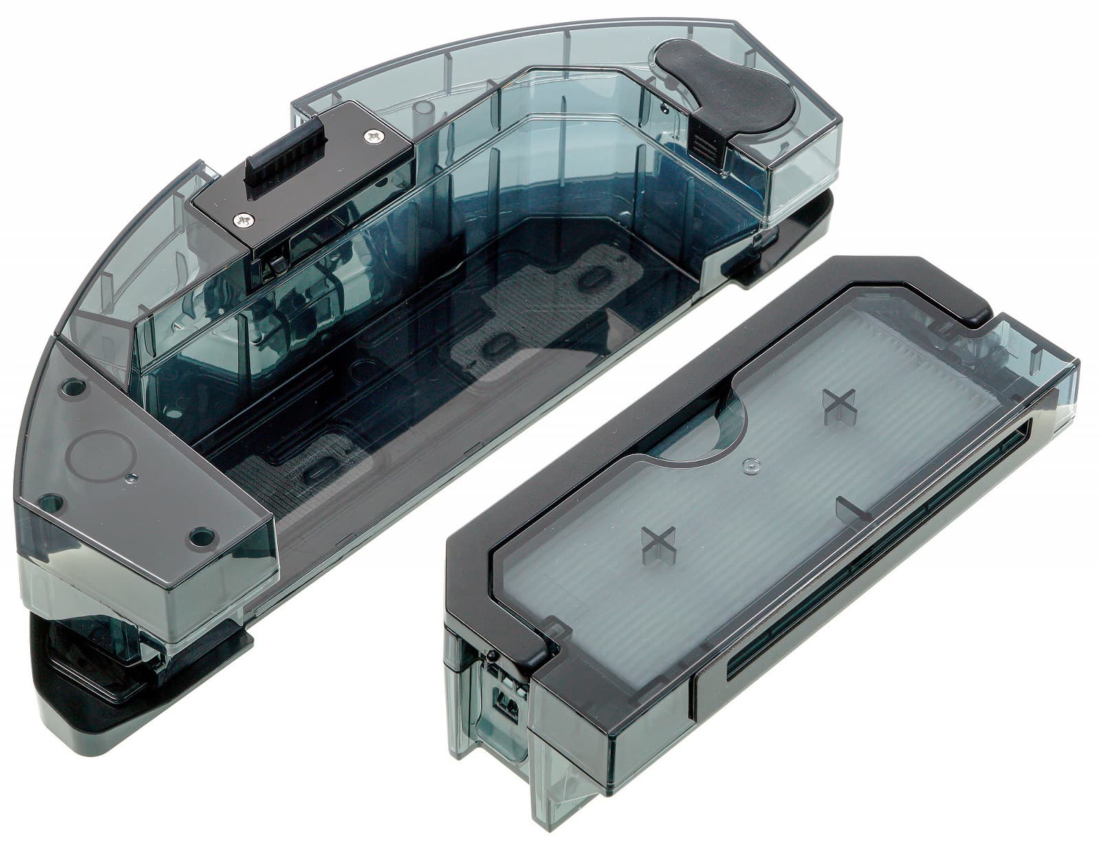 Что касается устройств с функцией влажной уборки, то они укомплектованы дополнительным контейнером для воды (иногда он совмещен с миниатюрным контейнером для пыли). Вода из такого контейнера попадает на тряпку (чаще всего самотёком), в результате чего робот может не только пылесосить пол, но также и протирать его. Такая обработка, конечно, не заменяет полноценного мытья пола, однако позволит избавиться от мелких частиц пыли и вообще повысит общий уровень чистоты в доме. Поскольку контейнер для воды устанавливается в тот же отсек, что и контейнер для пыли, его размер оказывается примерно таким же.