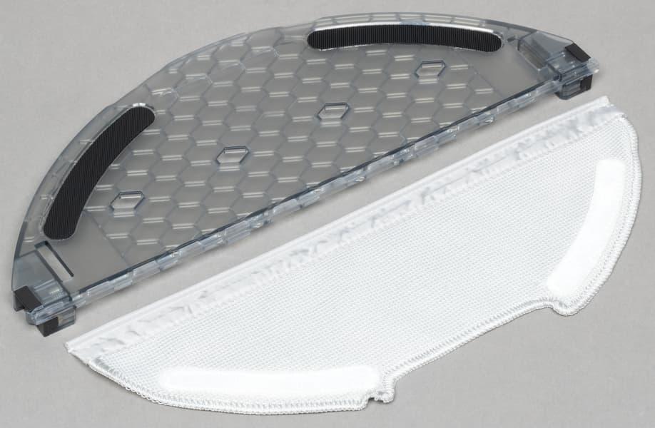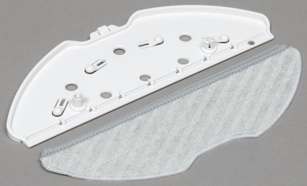 Тряпка для протирки пола закрепляется на съемной рамке. В месте, где она касается корпуса, размещен подвижный П-образный элемент, управляющий прилеганием к поверхности. Во время влажной уборки он опущен, а при подъезде к препятствиям, которые могут повредить модуль, приподнимается приблизительно на 10 миллиметров.