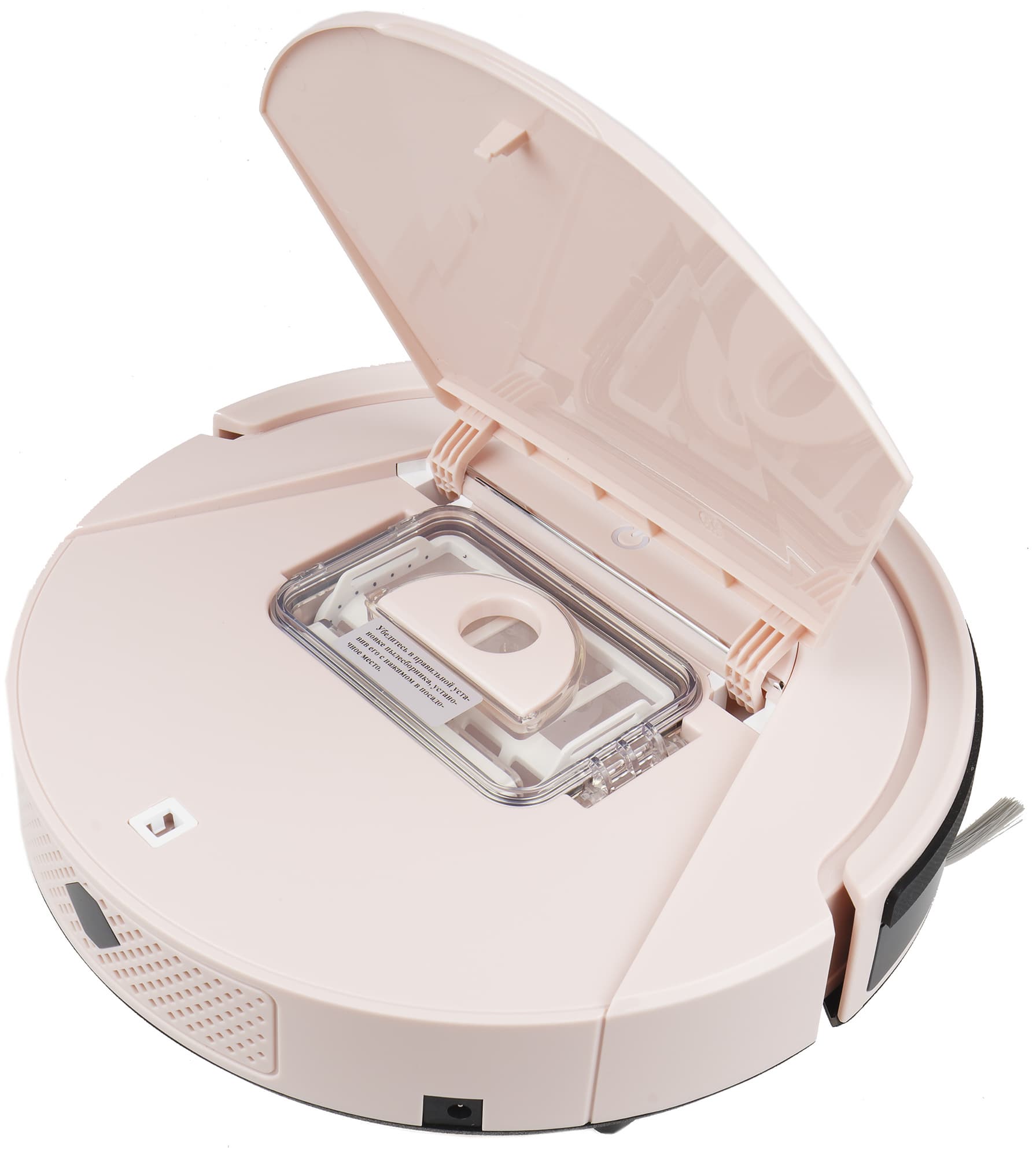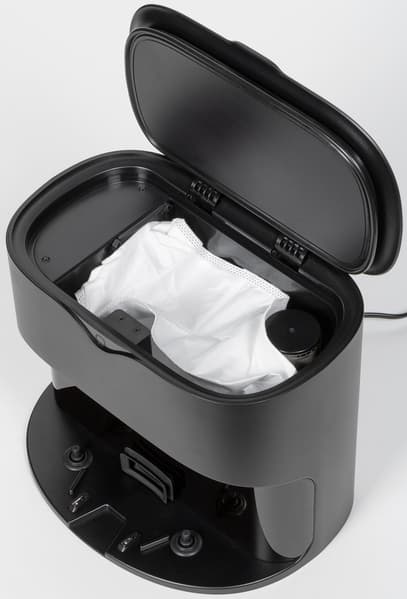 Поток воздуха с пылью и мусором покидает контейнер и направляется в одноразовый пакет, установленный в отсеке станции. Посадочное место под него оборудовано специальным датчиком, и без мешка функция самоочистки не включится.