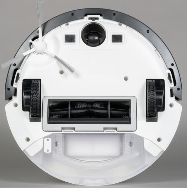 Конструкция робота при этом совершенно обычная — две боковые щетки, стандартный набор датчиков (ИК-датчики плюс подвижный бампер. Привлекает внимание лишь комбинированный контейнер для сухой и влажной уборки, однако таким сейчас сложно удивить даже в бюджетных моделях.