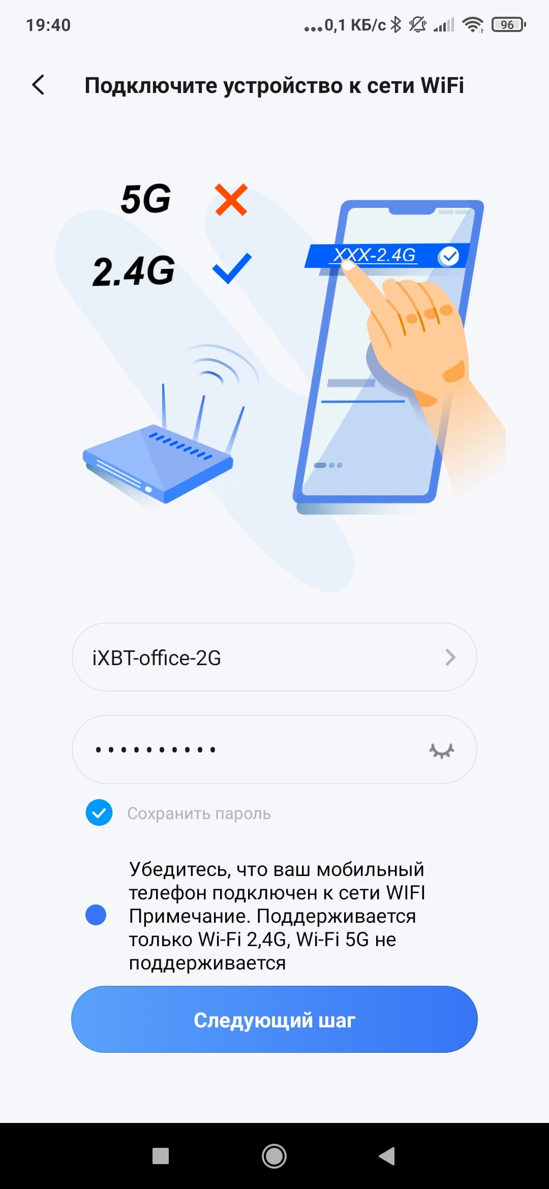 Приложение запрашивает данные для доступа к беспроводной сети, после чего выдает пошаговые инструкции для подключения. Отметим еще раз, что робот не поддерживает сети в диапазоне 5 ГГц, что при такой цене и «статусности» устройства смотрится уже немного странно.