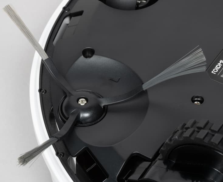Боковая щетка у нашего робота всего одна — это на сегодняшний день своего рода новый тренд для умных роботов: после многочисленных экспериментов большинство производителей пришли к выводу о том, что при правильно настроенной системе навигации наличие или отсутствие второй щетки не влияет на качество уборки. На своем месте боковая щетка крепится с помощью одного винта.