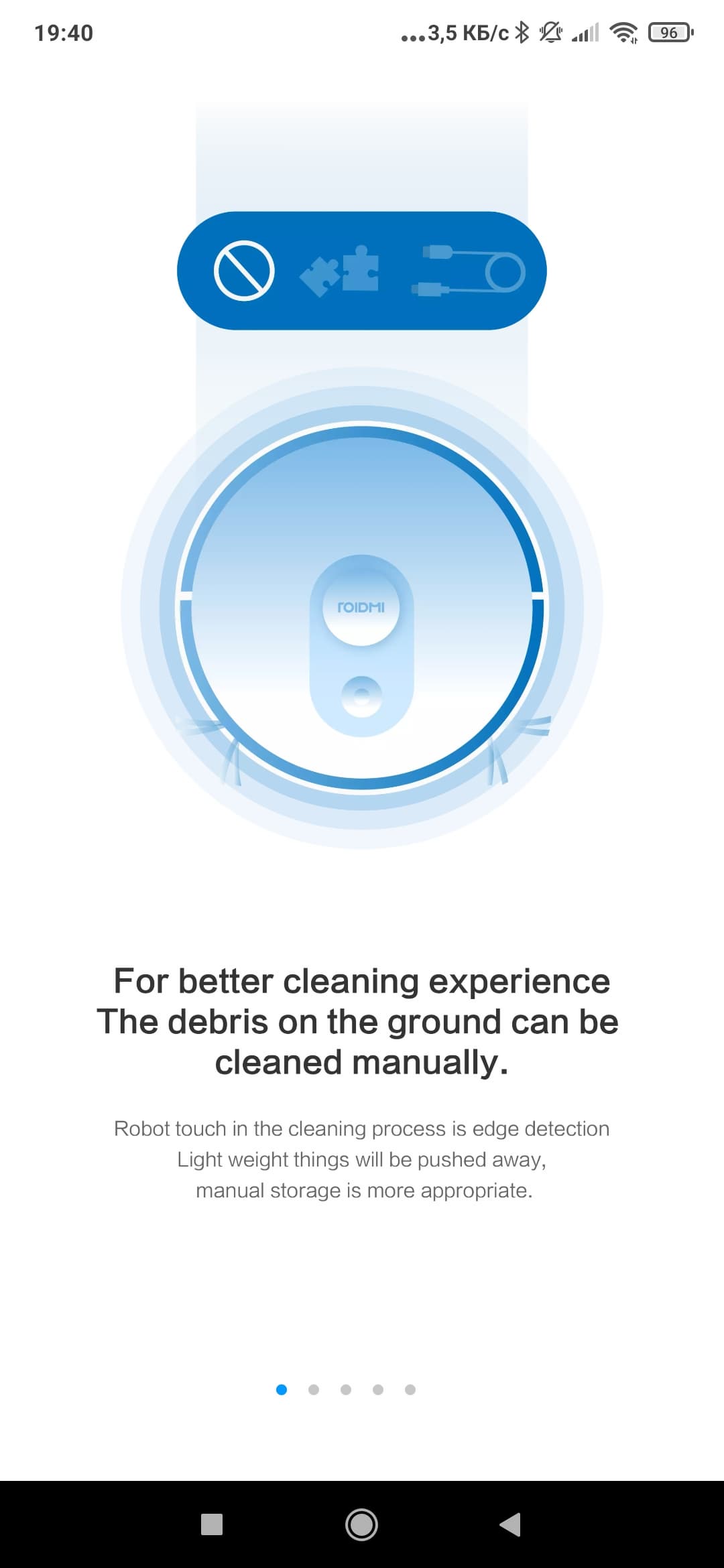 Для управления прибором производитель предлагает свое фирменное приложение Roidmi, доступное для загрузки из маркета или посредством QR-кода, размещенного на корпусе пылесоса. Также допускается управление посредством системы Mi Home, однако, как показывает наш опыт, данный способ в большинстве случаев является второстепенным — ряд функций оказывается недоступным, возникают сложности с подключением и т. п. Поэтому мы воспользовались официальным приложением, которое в полной мере способно раскрыть функциональность пылесоса.