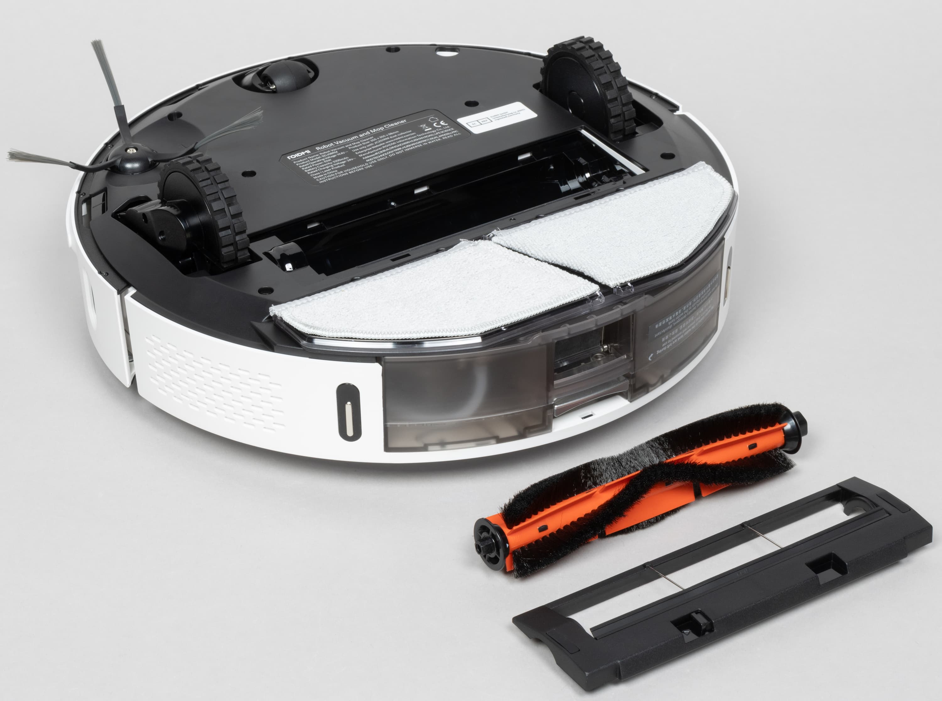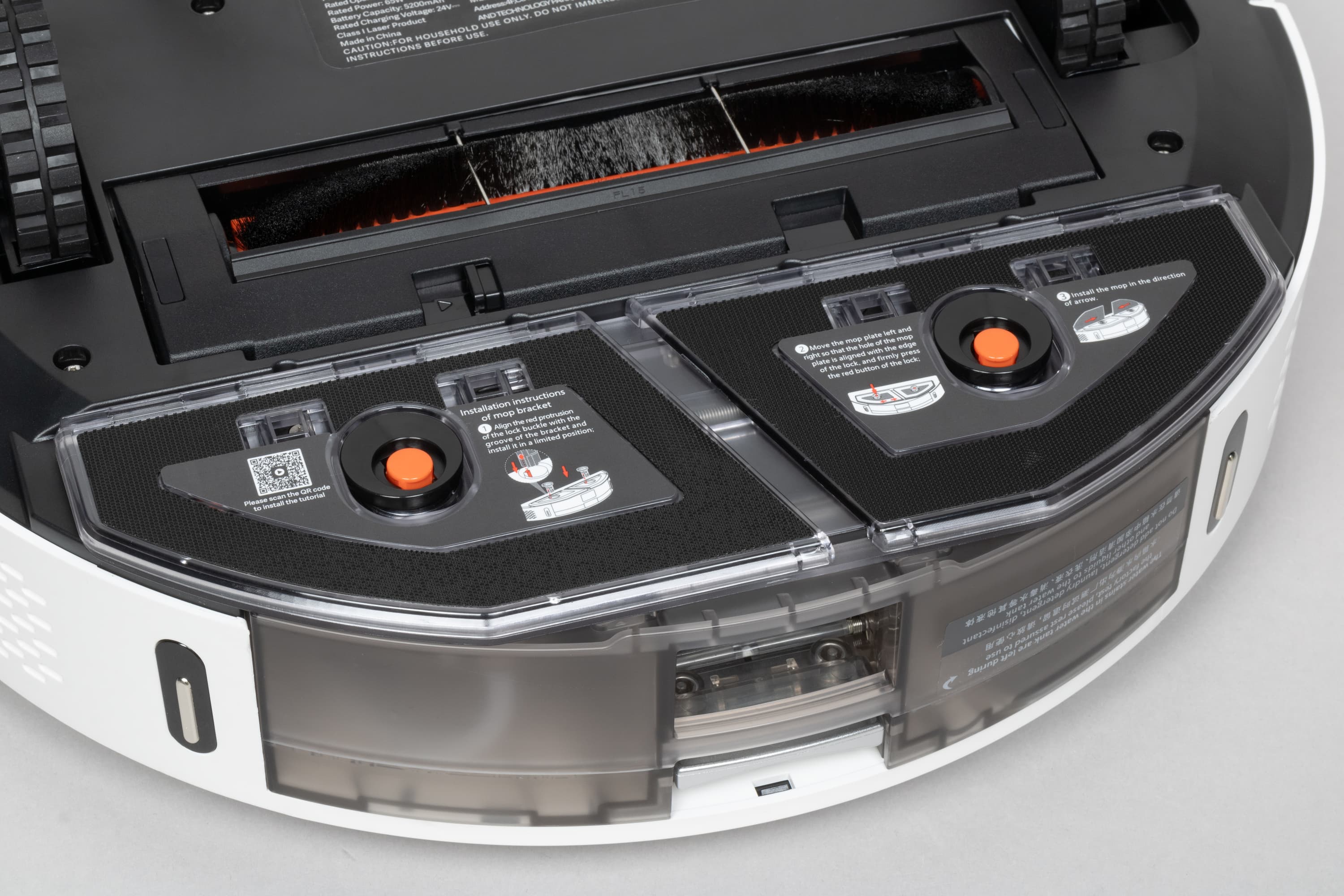 Зачем нужна такая сложная система? Дело в том, что во время уборки каждая из салфеток будет независимо вибрировать (слегка перемещаться влево/вправо) со скоростью 320 колебаний в минуту. Сама подошва при этом способна приподниматься вверх на 7 мм (это понадобится, например, при езде по коврам).