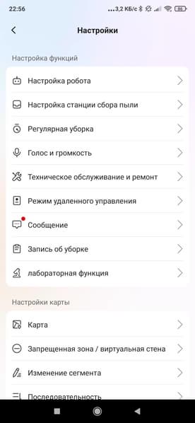 Что касается настроек, то тут нас в первую очередь интересуют доступные режимы. Мы можем выбрать сухую, влажную или комбинированную уборку, а также настроить силу всасывания и количество проходов по помещению.