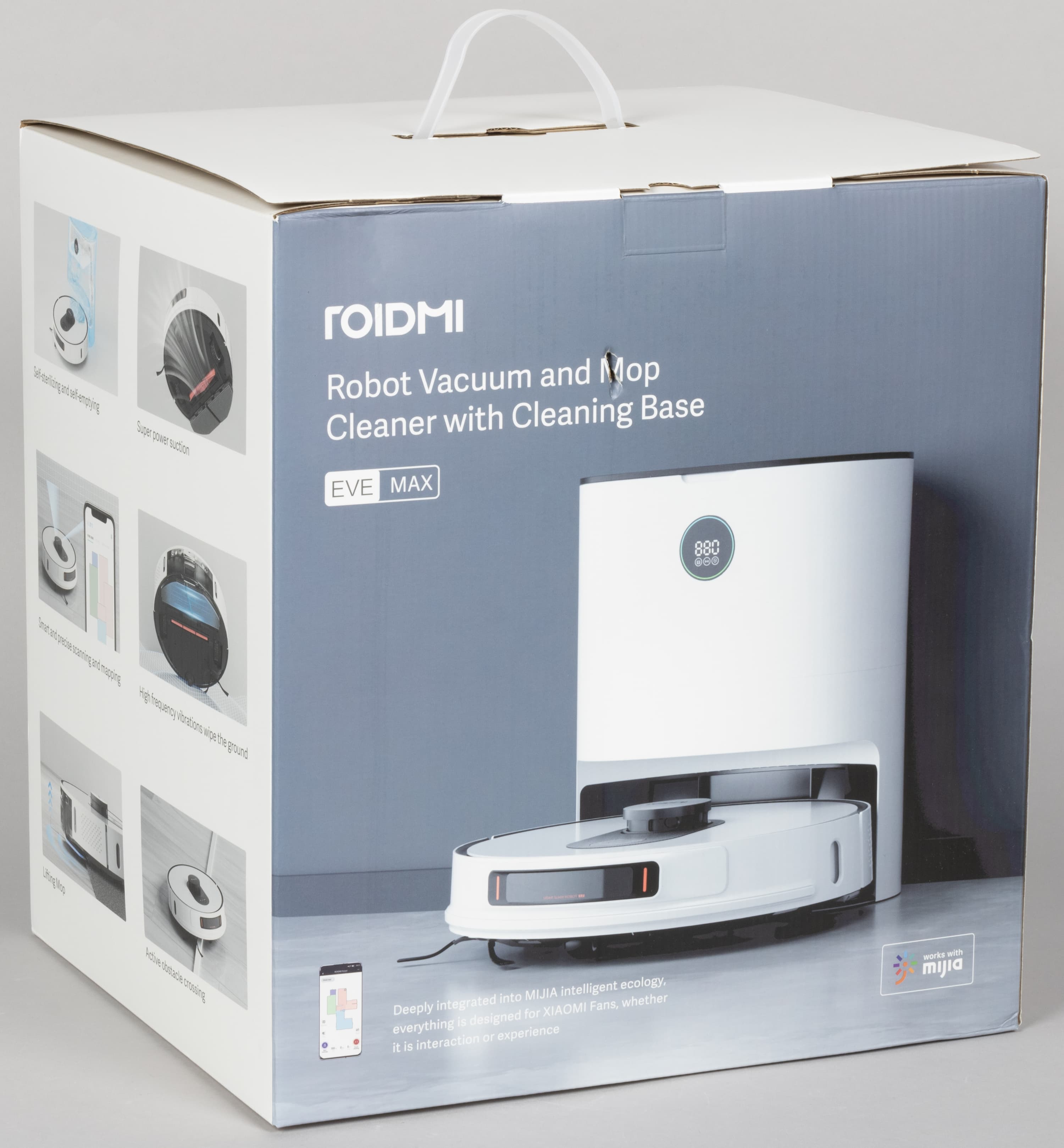 Робот-пылесос Eve Max — новая модель, выпущенная под брендом Roidmi (суббренд Xiaomi). Данное устройство предназначено для автоматизированной сухой и полуавтоматизированной влажной уборки. То есть собирать пыль и сбрасывать ее в «базу» пылесос будет самостоятельно, а вот влажная уборка потребует некоторого внимания пользователя: доливать воду и мыть салфетки придется ему самому.