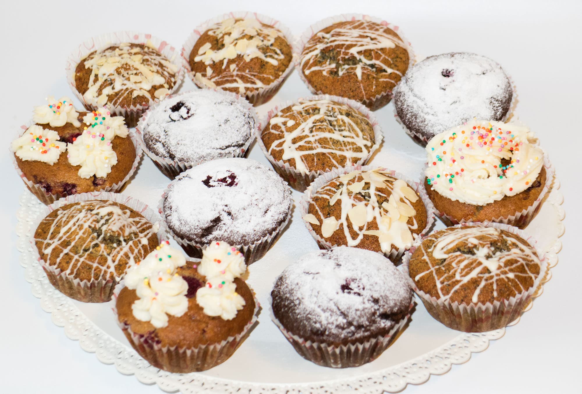Когда маффины остыли, украсили их сверху сахарной пудрой, белым шоколадом, миндальными лепестками. А наличие запасов творожного крема позволило нам сделать даже парочку капкейков.