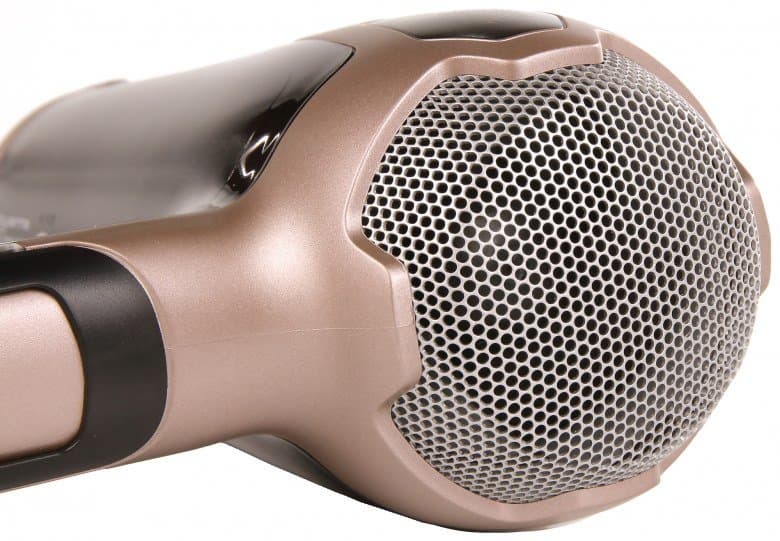 Сзади вентилятор защищен серебристой ячеистой сеткой в один слой. Обращаем внимание на один слой защиты, так как во время тестирования волосы длиной ниже плеч дважды попали через сетку на лопасти (без катастрофических последствий).