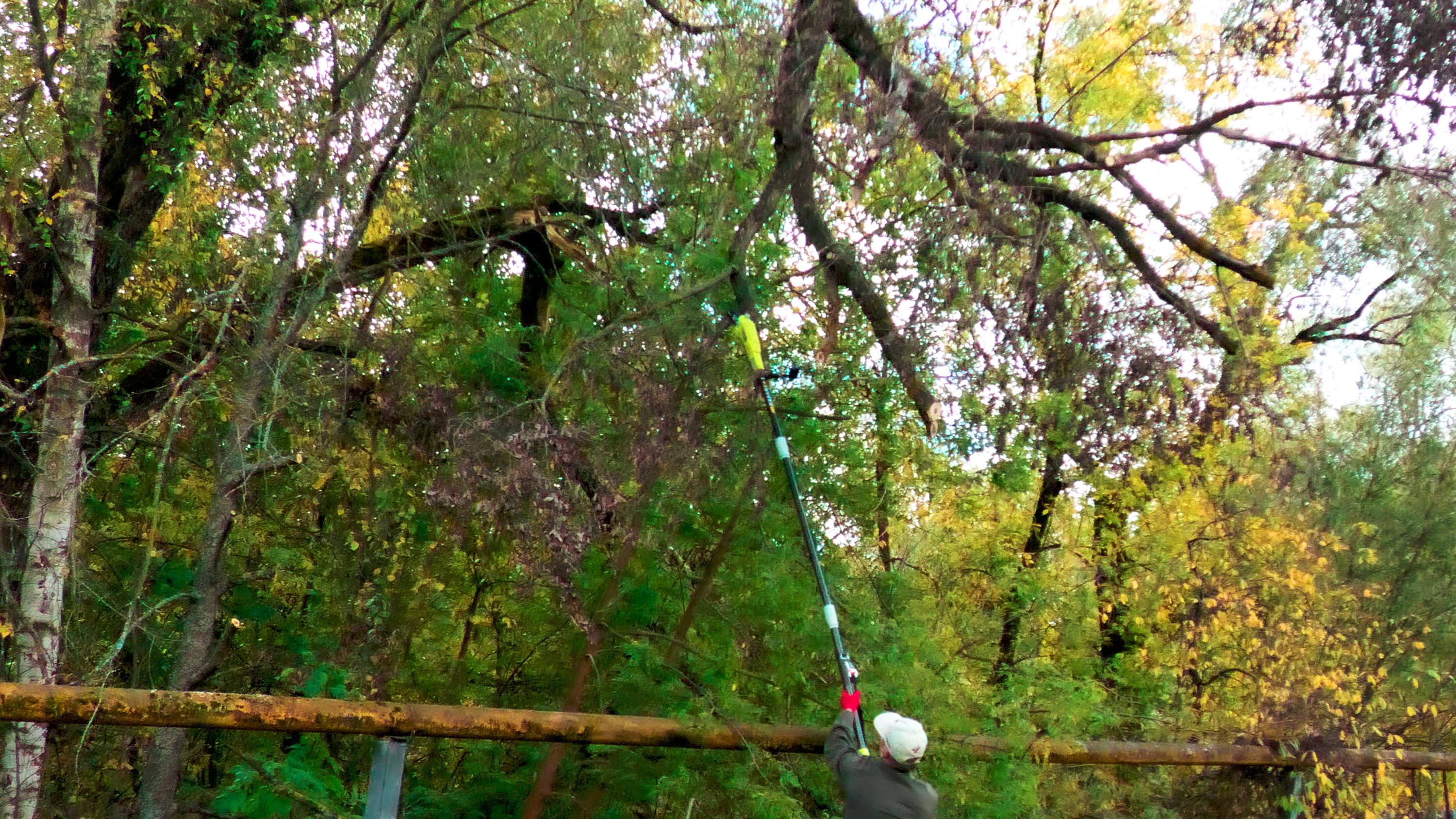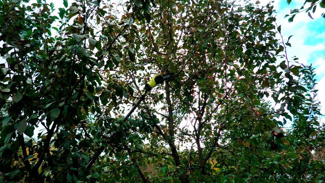 Один из сложных сценариев — это обрезка деревьев, или кронирование. Главный вопрос: как добраться до нужной ветки? Со стремянки? Это не всегда возможно из-за густой кроны дерева, неподходящего ландшафта (отсутствие нормальной опоры) или слишком большой высоты. Тут без высотореза — никак.