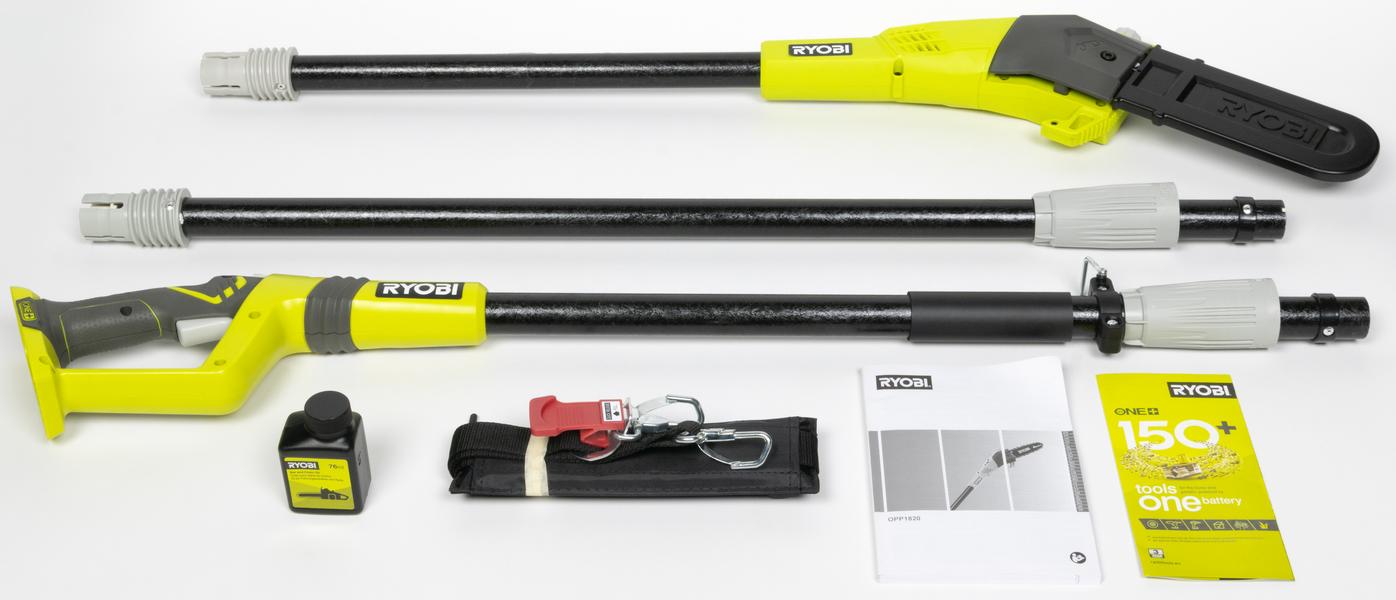 Ryobi OPP1820 — незаменимый помощник в саду, освобождающий от необходимости использовать лестницу. С одним уточнением: прибегать к его услугам доведется нечасто, в лучшем случае дважды в год. Впрочем, несложно представить и другие сценарии использования инструмента, не только садово-огородные, а более масштабные: подрезка высокого кустарника, формирование аллей и т. д. Но в таких случаях придется запастись достаточным количеством цепного масла.