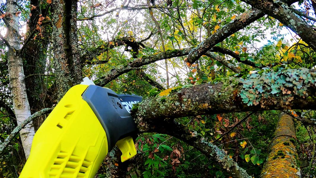Знакомство со штанговой цепной пилой Ryobi OPP1820 помогло автору решить давнюю нерешаемую проблему со сломанным деревом. А заодно позволило отметить следующие положительные качества инструмента: