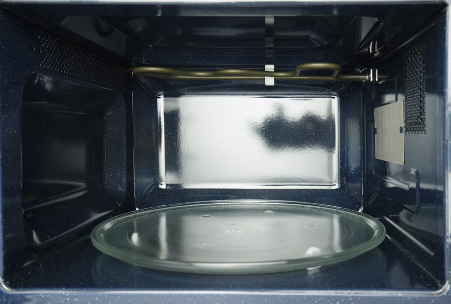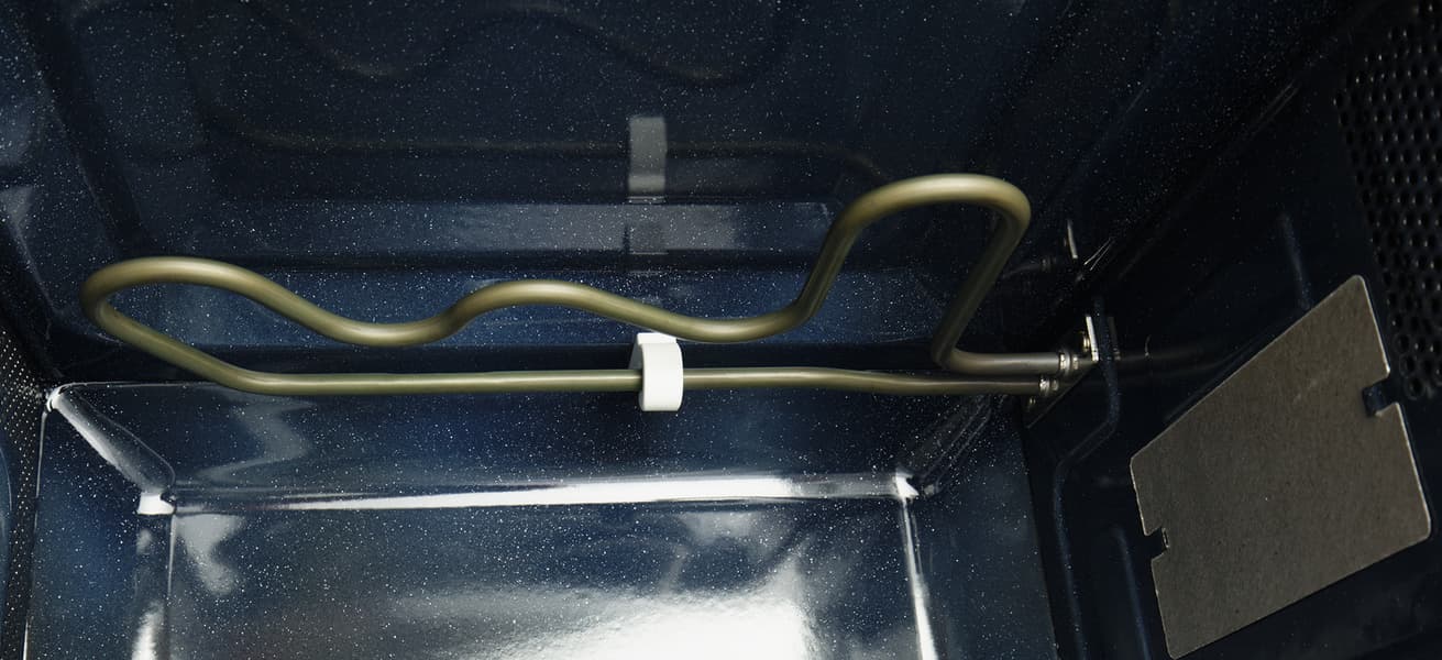 Сверху камеры расположен тэн гриля. Снизу — вращающийся поддон столика.