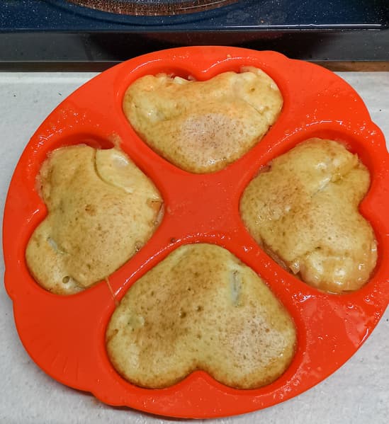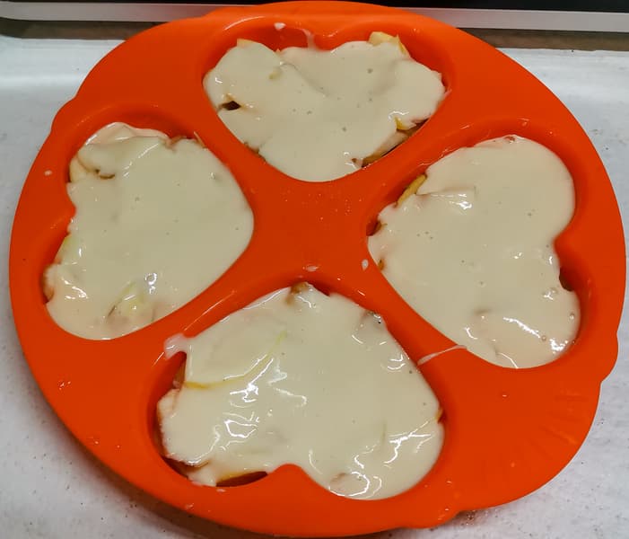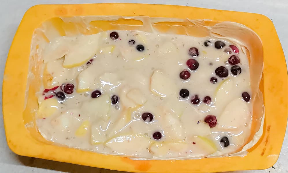 Остатки теста смешали с остатками яблок, добавили клюкву, залили в силиконовую форму. Поставили на средние микроволны на 10 минут, после добавили гриль еще на 4 минуты.