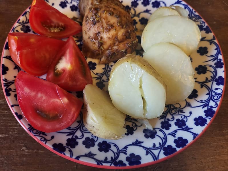 Положили на картошку сливочное масло и съели ее как гарнир, хотя можно было бы и покрошить в салат, и съесть как основное блюдо.