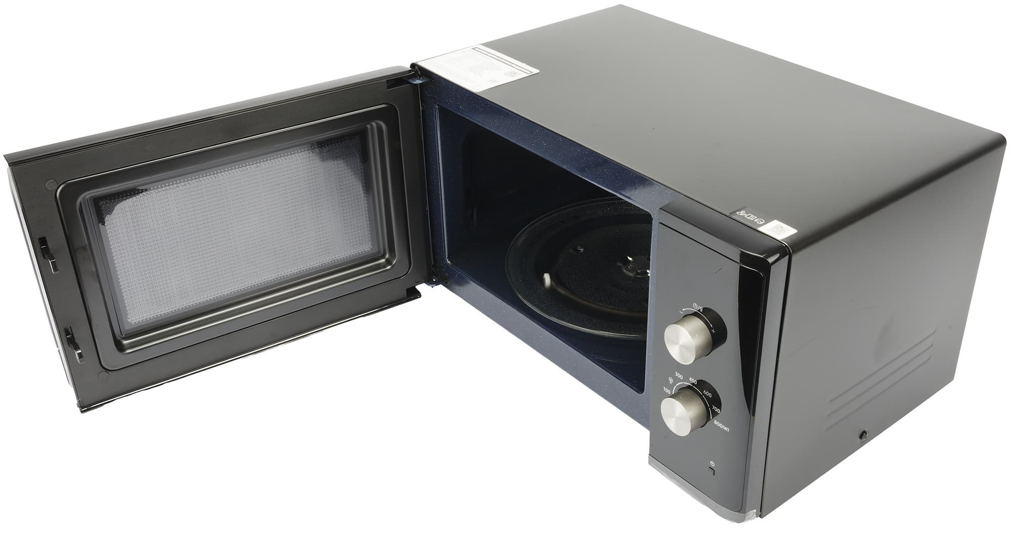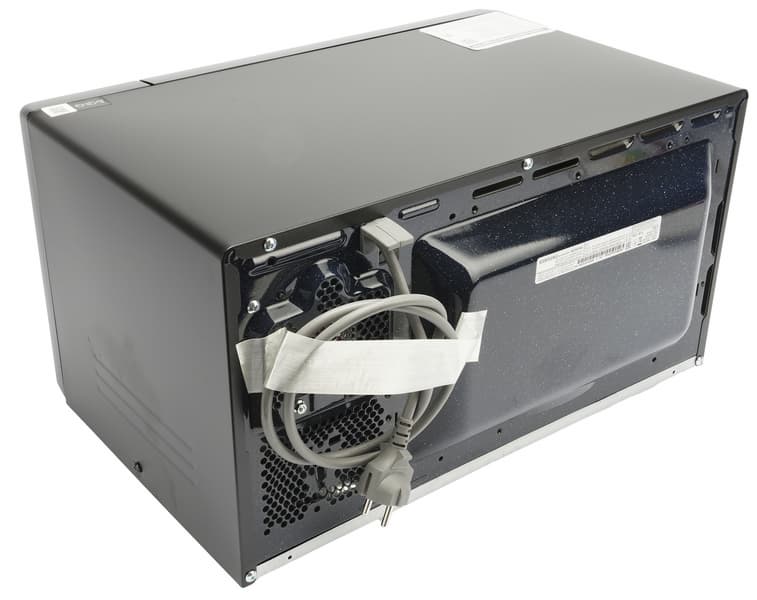 Дверца открывается без усилий, однако при резком движении может слегка потянуть за собой весь корпус, поэтому мы обычно придерживали микроволновку рукой. Закрывается дверца достаточно мягко.