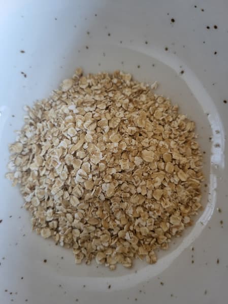 С овсянкой всё вышло предельно просто. Мы насыпали в тарелку геркулес быстрого приготовления, сахар, соль, залили всё это молоком и отправили в микроволновку на 800 Вт и 1 минуту.