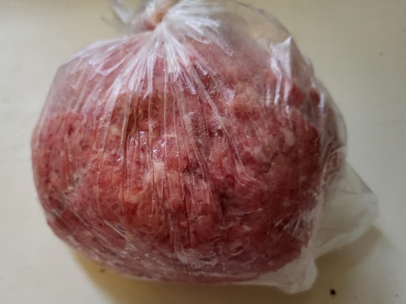 Для нашего традиционного теста мы использовали 800 г фарша из свинины и говядины в пропорции 50/50.