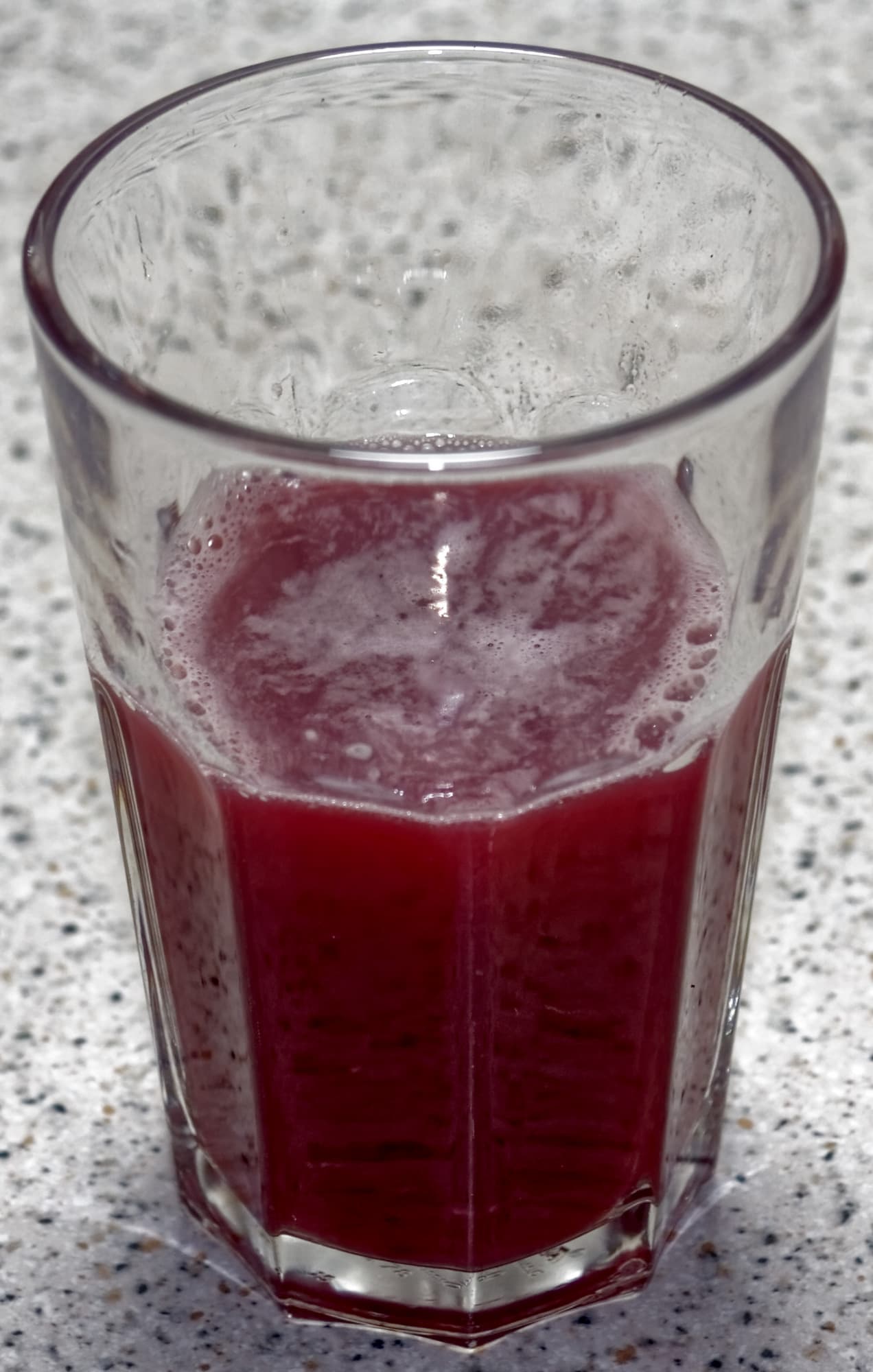 Структура сока оказалась однородной. Сок, полученный с помощью ручного пресса, содержал меньше мякоти, но через фильтрационную решетку смогли проникнуть частицы семечек. В случае, если это представляет проблему, мы бы порекомендовали подвергнуть сок дополнительной грубой фильтрации (например, через обычное сито).