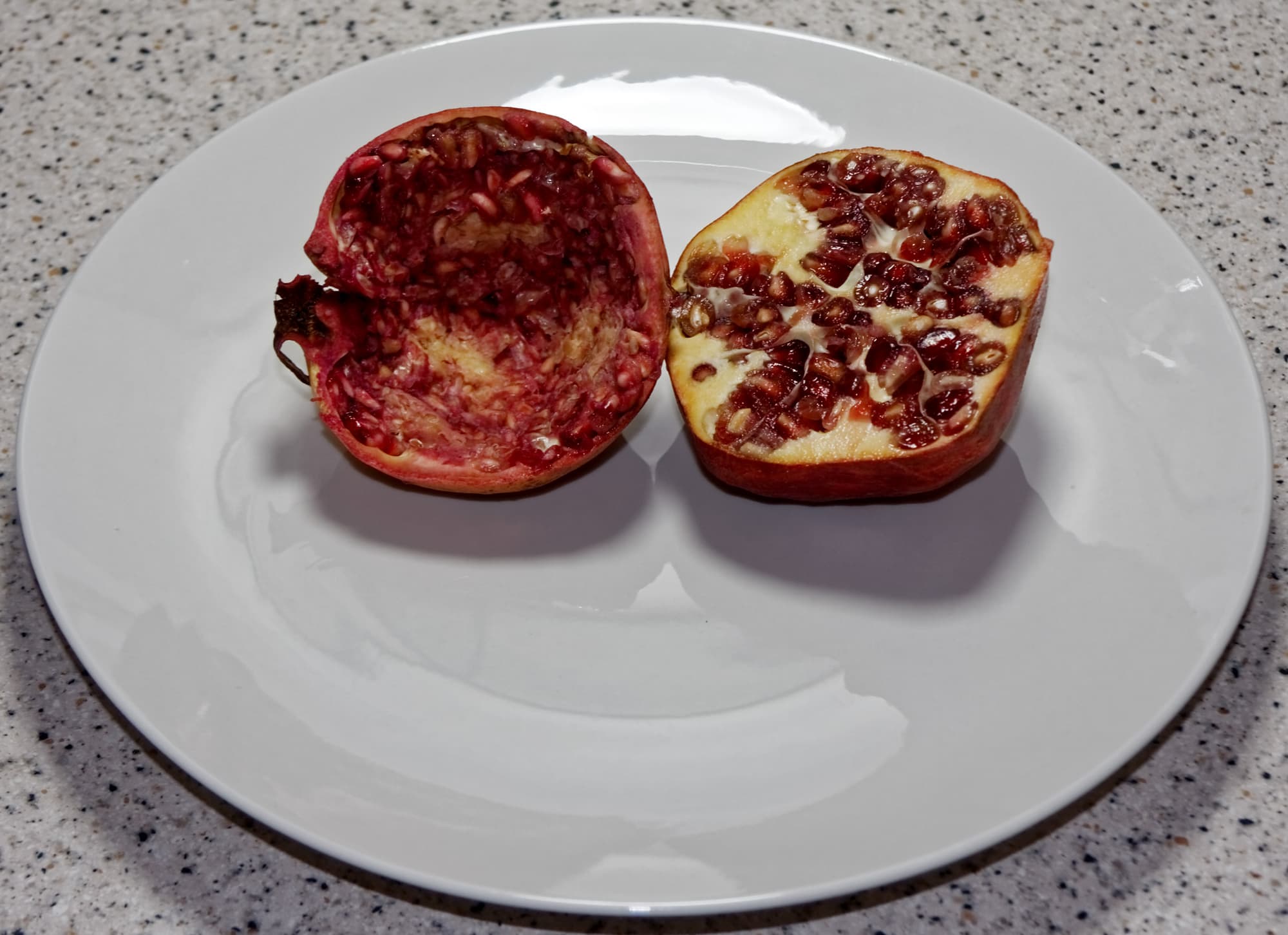 Гранат — единственный фрукт в нашем тестировании, который мы не стали отжимать с помощью шнековой соковыжималки. Дело в том, что шнек давит семечки граната, в результате чего готовый сок имеет неприятный привкус и большое количество белой взвеси.