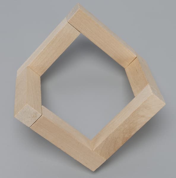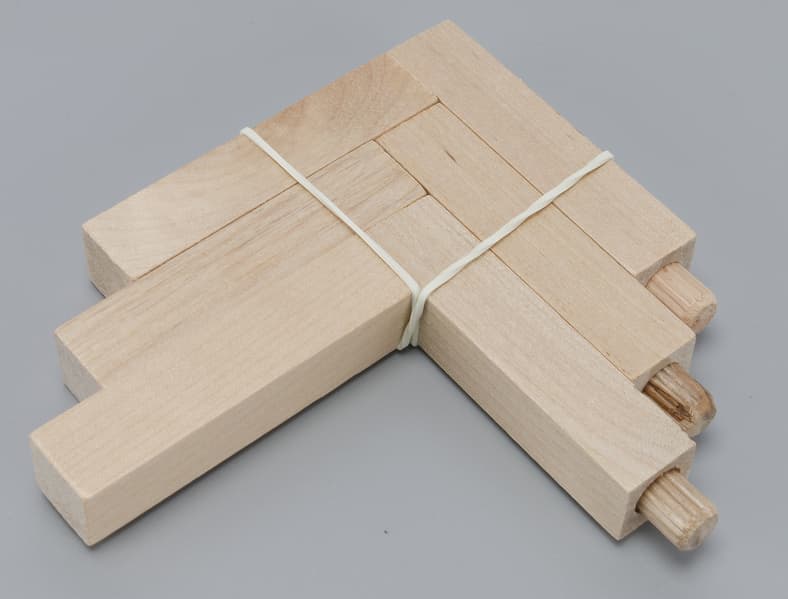 Подставка прибора упакована отдельно и представляет собой три уголка из необработанного светлого дерева.
