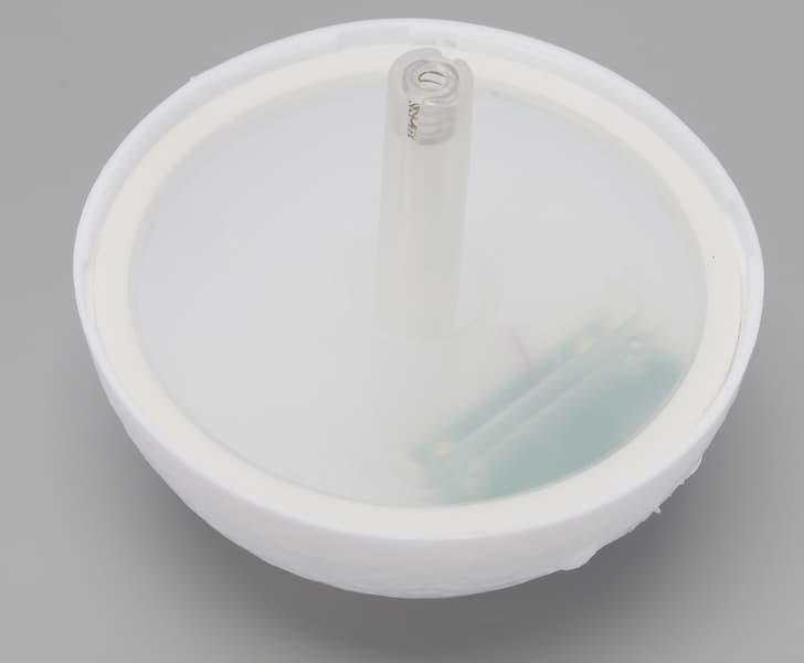 Струйка холодного пара, поднимающаяся над включенным устройством, выполняет исключительно декоративную функцию. По сути же устройство представляет собой недорогую и оригинальную светодиодную лампу, которой можно (вероятно, не очень долго) пользоваться в качестве ночника, но некоторые особенности конструкции дают основания сомневаться в ее долговечности.