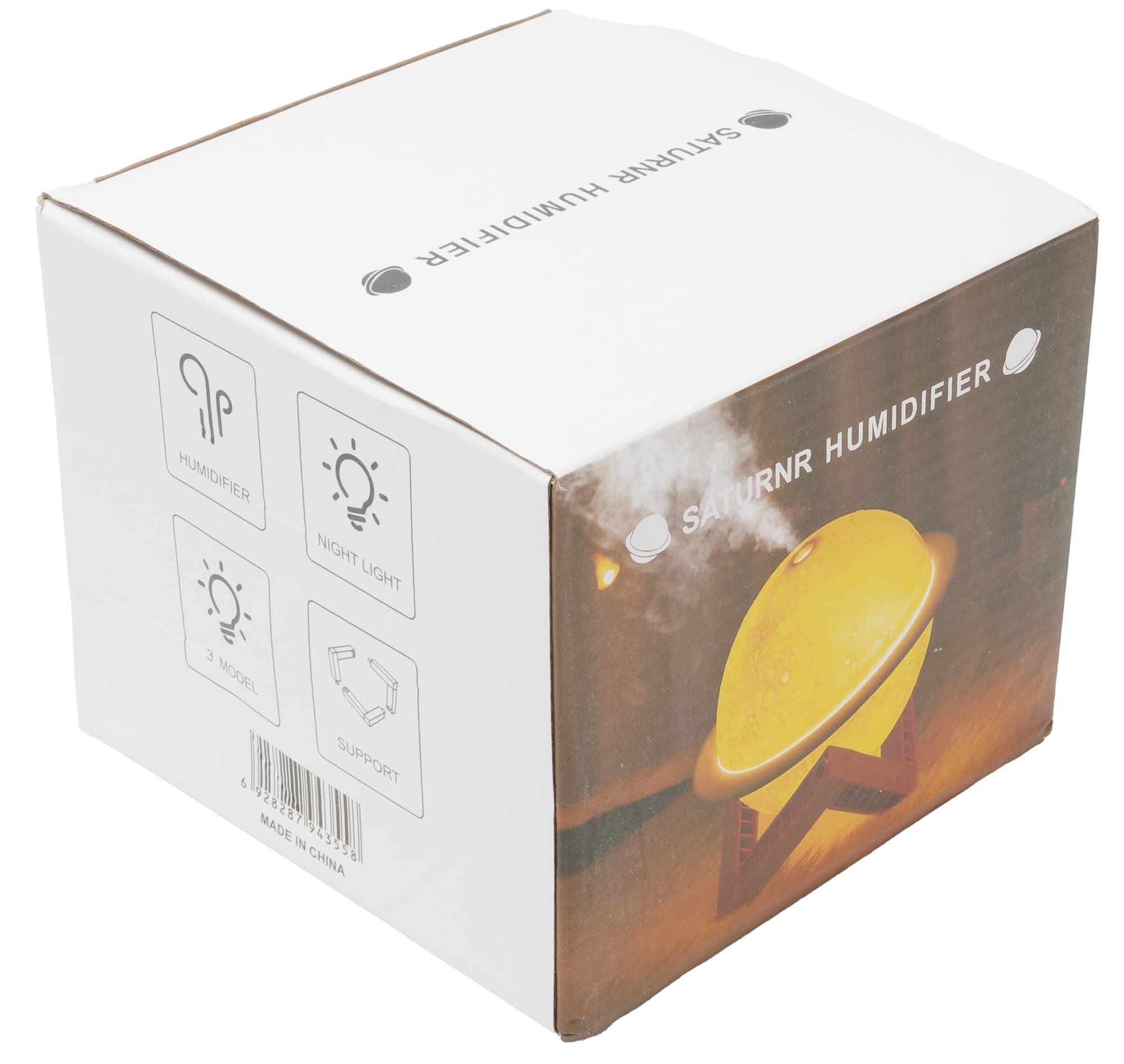 Иллюстрации на боковых гранях кратко рассказывают об особенностях устройства. К ним производитель относит наличие функции увлажнения, ночной подсветки (3 режима) и подставки.