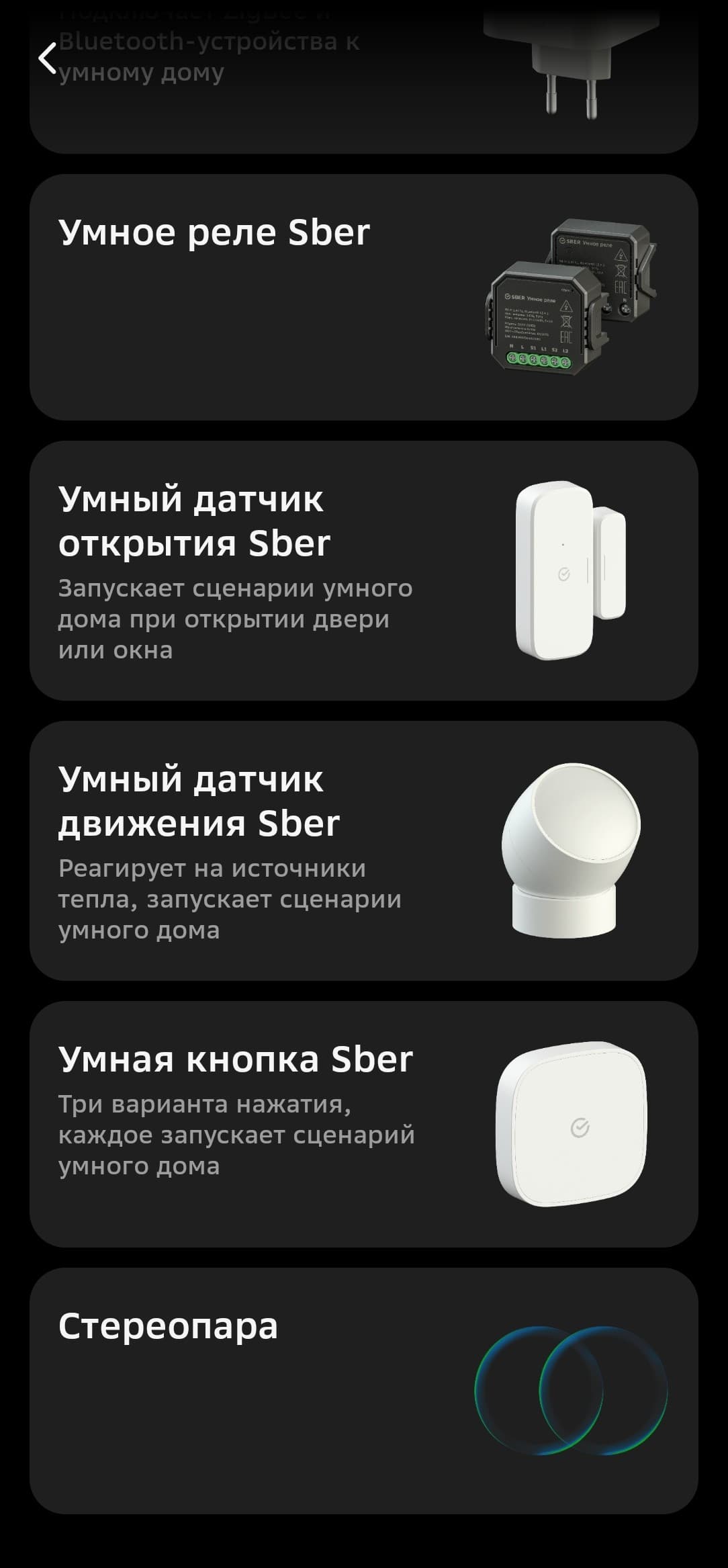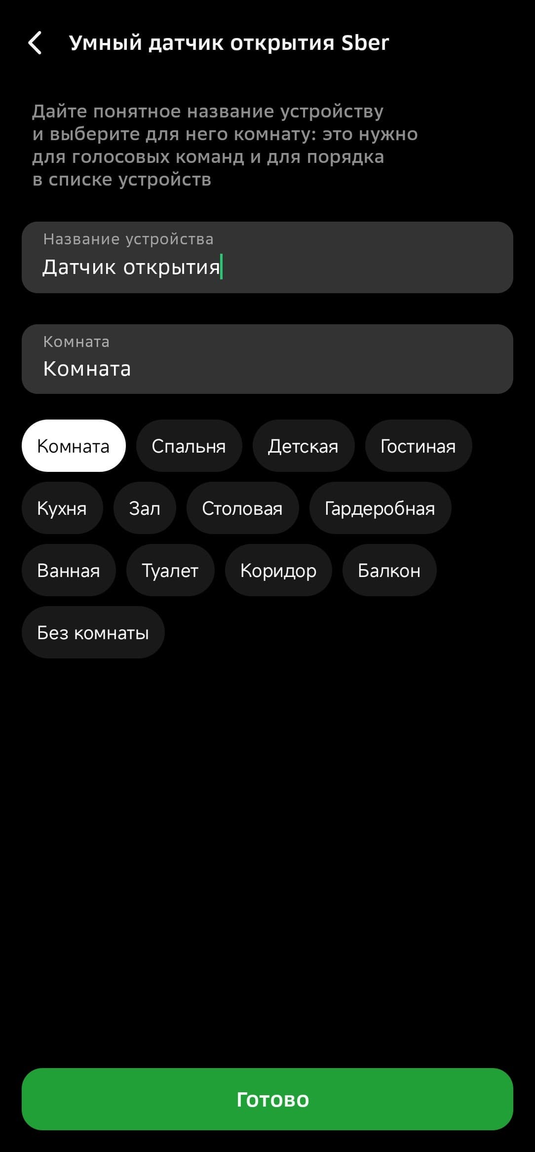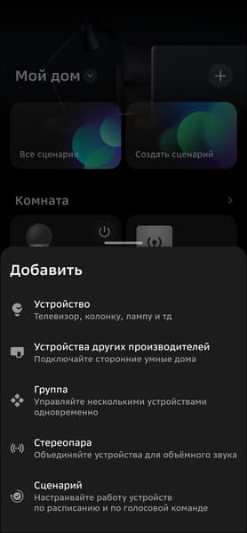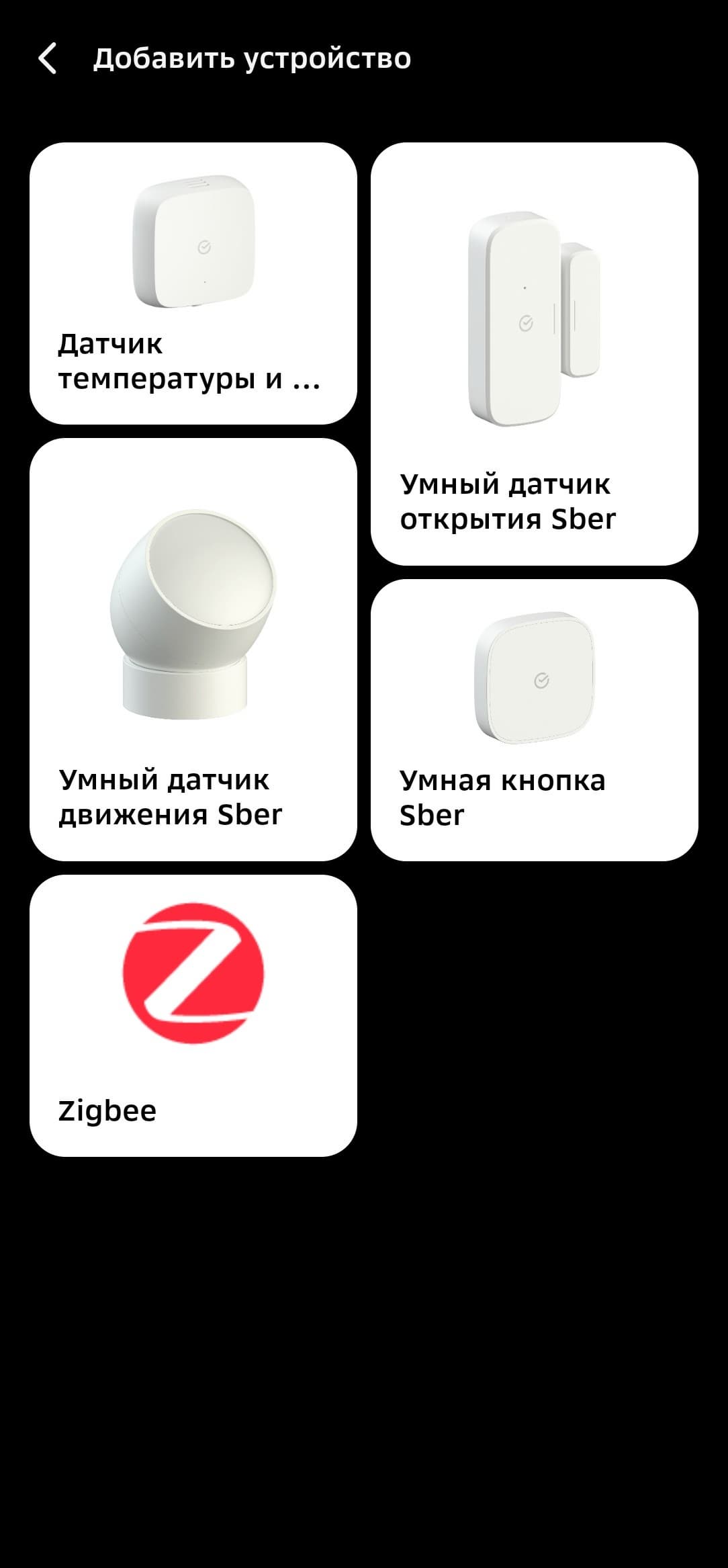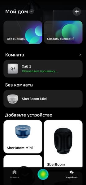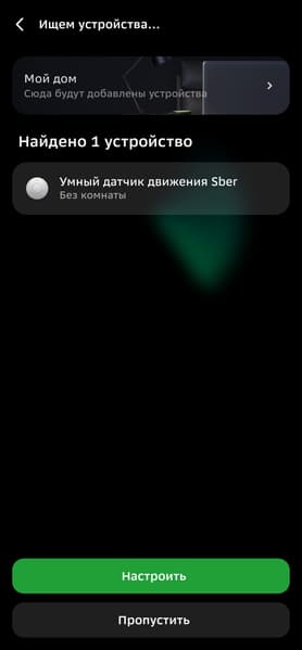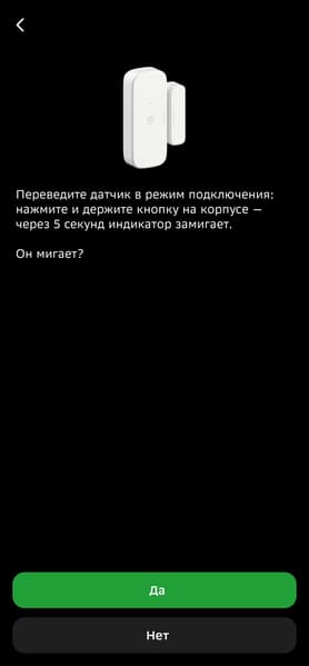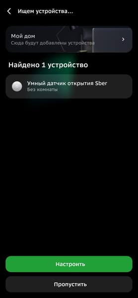 Zigbee-устройства можно подключать из вкладки хаба в приложении, но собственные продукты Сбера удобнее начинать настраивать из главного меню, в таком случае система наглядно демонстрирует, как подготовить датчики к работе. Так и будем поступать.
