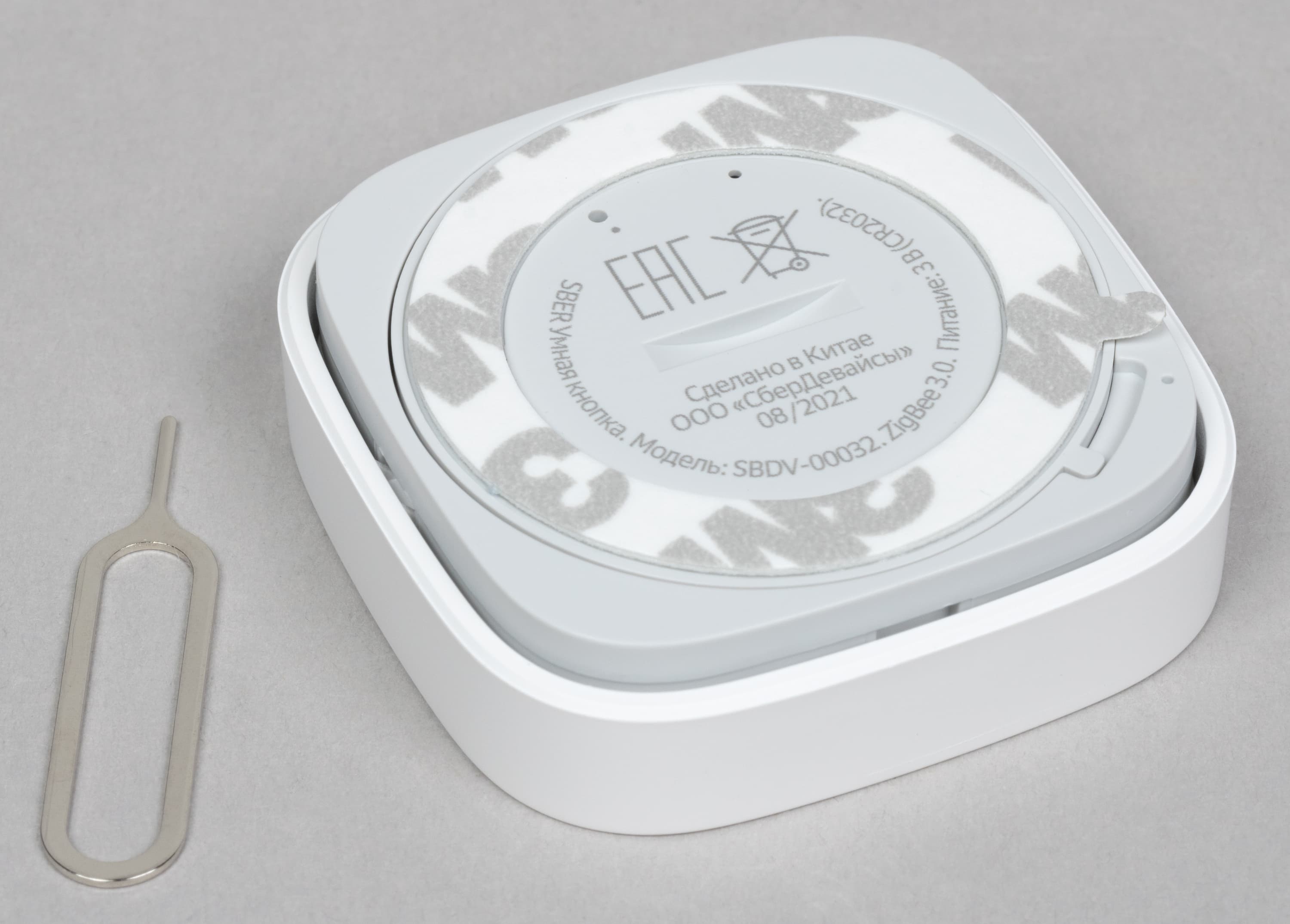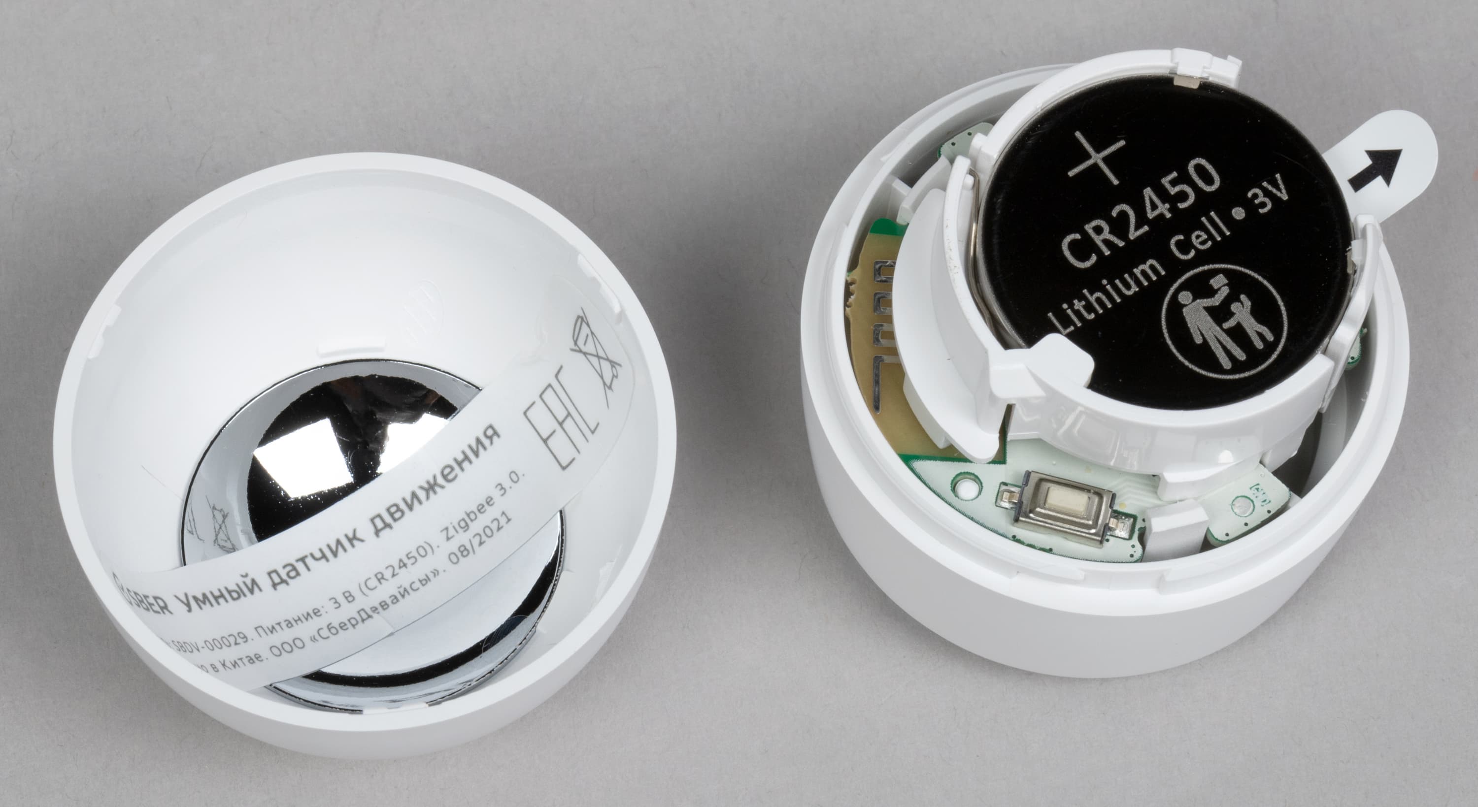 Поворачиваем крышку и снимаем, под ней видим элемент питания CR2032. Кстати, производитель анонсирует до 2 лет работы устройств без замены батарейки, но тут всё зависит от условий эксплуатации, конечно.