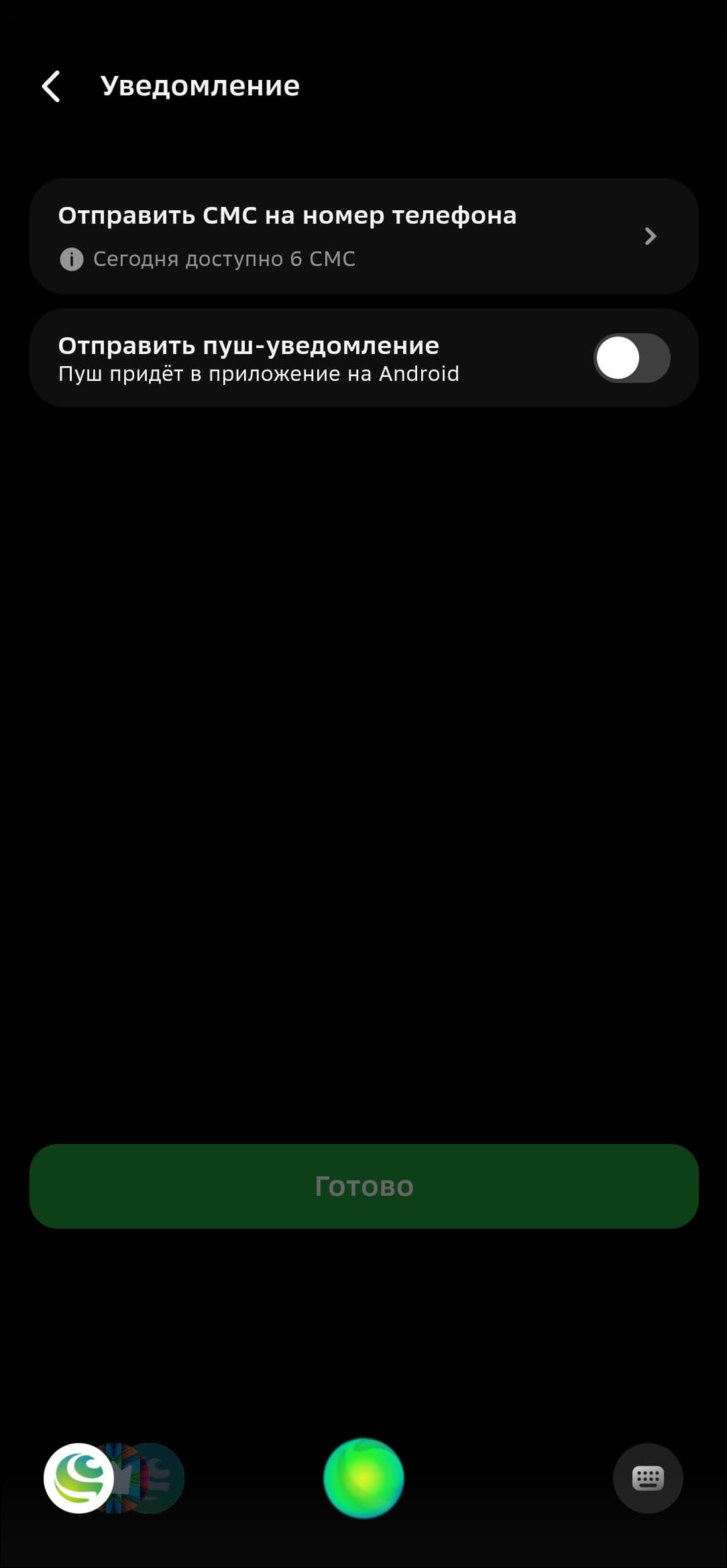 SMS уже пробовали, на этот раз пусть будет пуш-уведомление. Настраиваем, сохраняем — всё корректно работает.