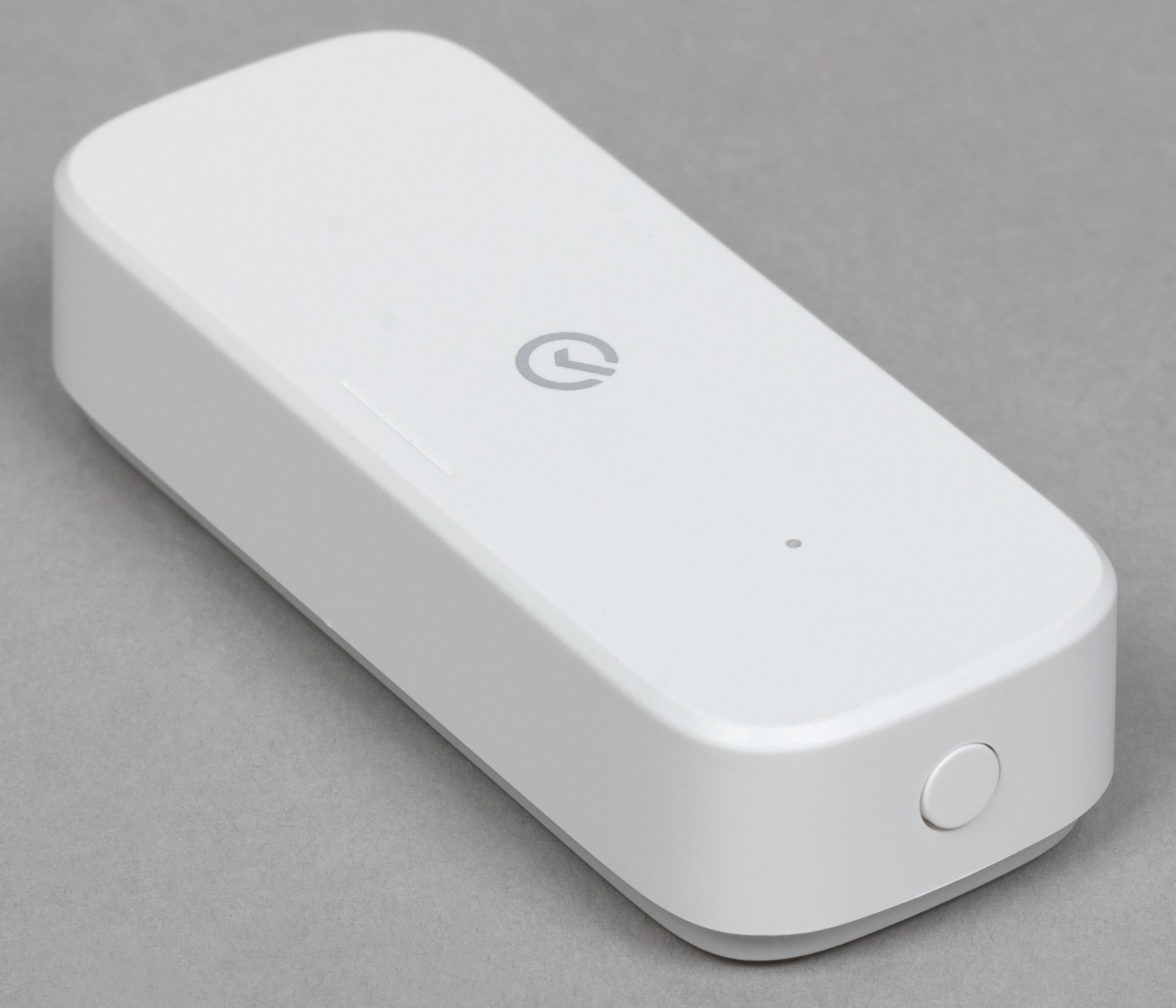 Датчик температуры похож на своих собратьев: маленький, с логотипом и индикатором состояния на верхней панели, кнопкой активации сопряжения сбоку.