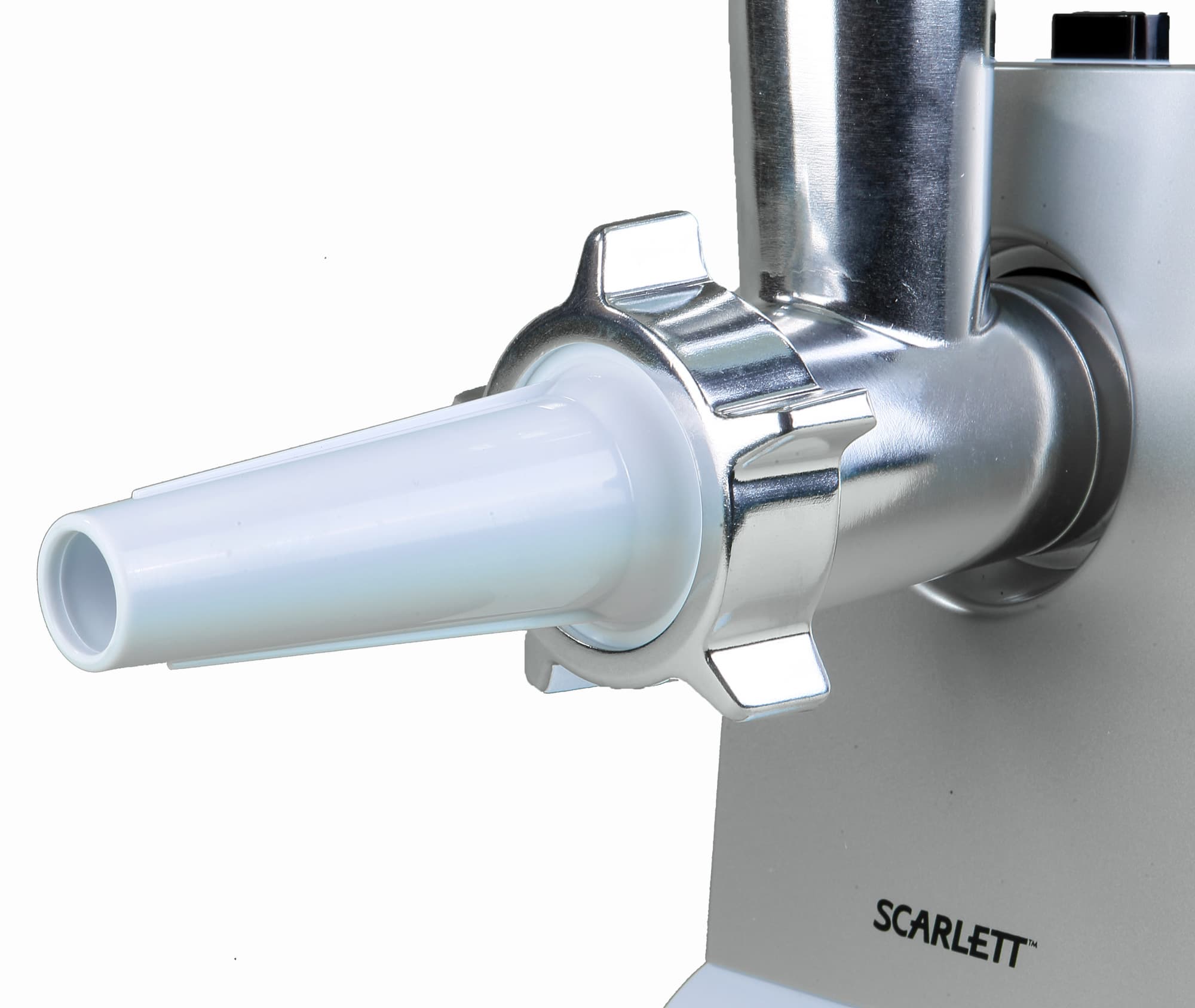 Что касается функциональности, мясорубка не предназначена для измельчения твердых продуктов, таких как кости, имбирь, орехи и др. Дополнительные насадки несколько расширяют спектр использования модели: с помощью Scarlett SC-MG45S47 можно изготавливать сардельки/сосиски и делать кеббе.