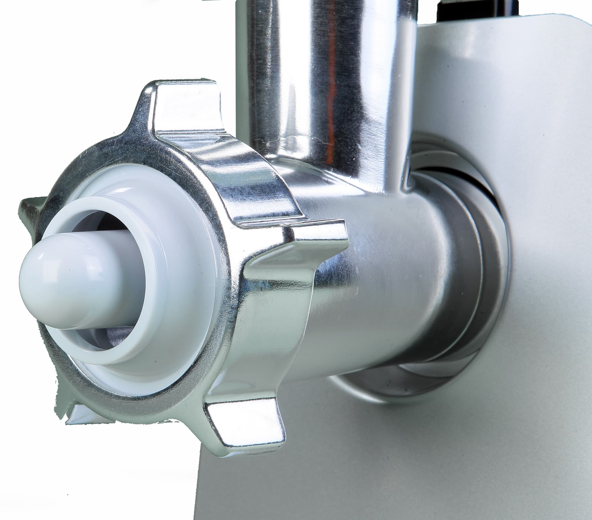 Дополнительные аксессуары — насадки для кеббе и колбасок — также имеют обычную форму. Они без труда крепятся на съемной насадке традиционным способом.